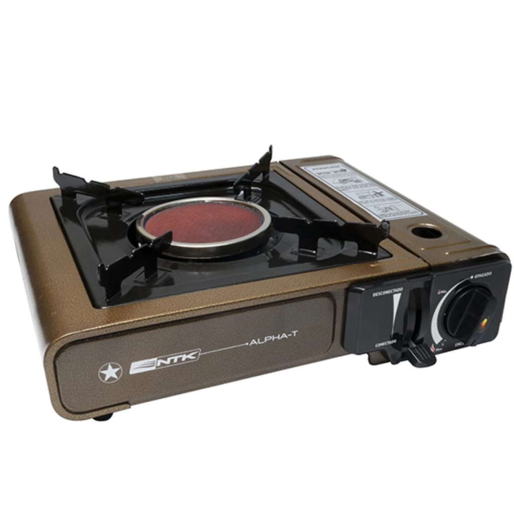 COCINA CATALÍTICA NTK ALPHA TCocina con quemador con tecnología de micro cerámica (catalítico), ideal para condiciones de aire libre.Construida en acero con pintura de enamol, para una más fácil limpieza.Compacta. resistente y liviana?.Encendido electrónico.Cubierta y parrilla enlozada para facilitar limpieza.Incluye maletín de transporte?.Dispositivo de seguridad para el control de salida de gas.Consumo de Gas: 136 gr/hr.Se utiliza con un cartucho Campgas.Dimensiones: largo 34 cm, ancho 28 cm, alto 11 cm.Peso: 1,7 kg.Codigo: 307133