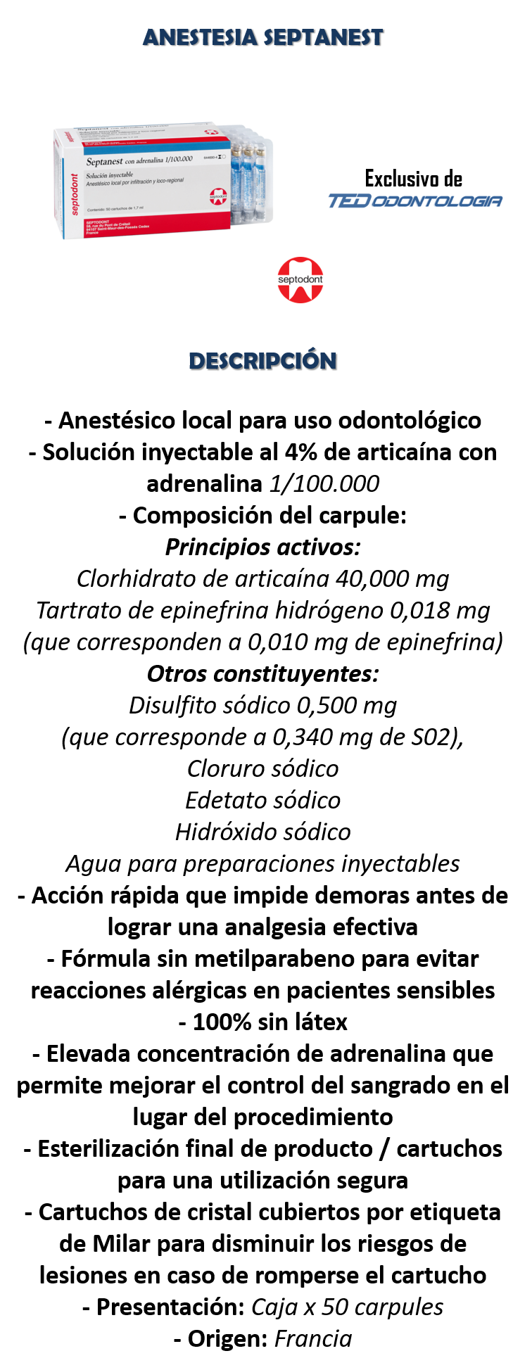 Anestesia SEPTANEST 1/100.000 x 50u Septodont