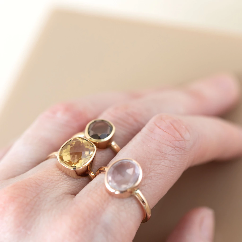 Increíble anillo de oro amarillo 18k con un Citrino natural facetado engarzado a mano.