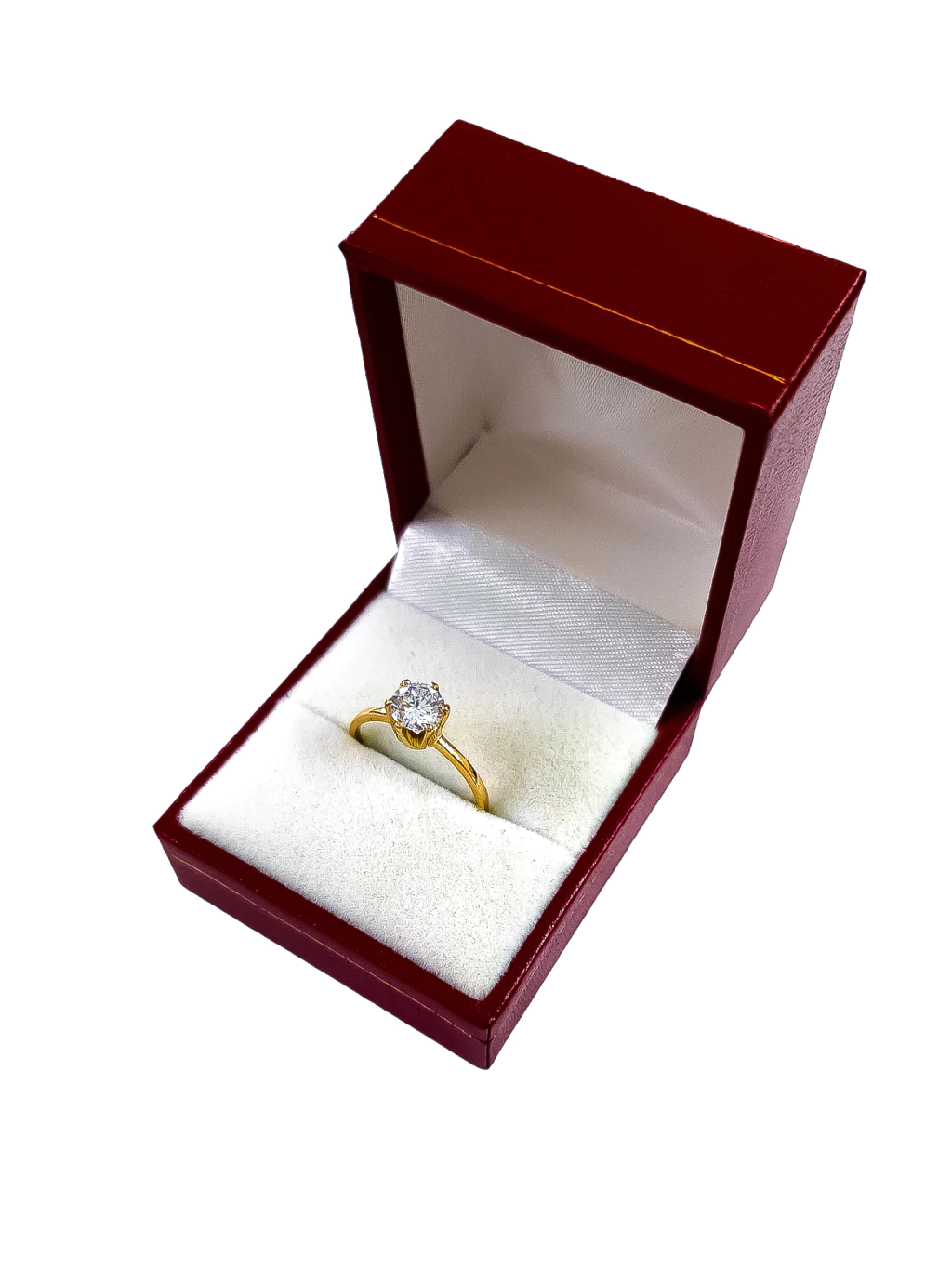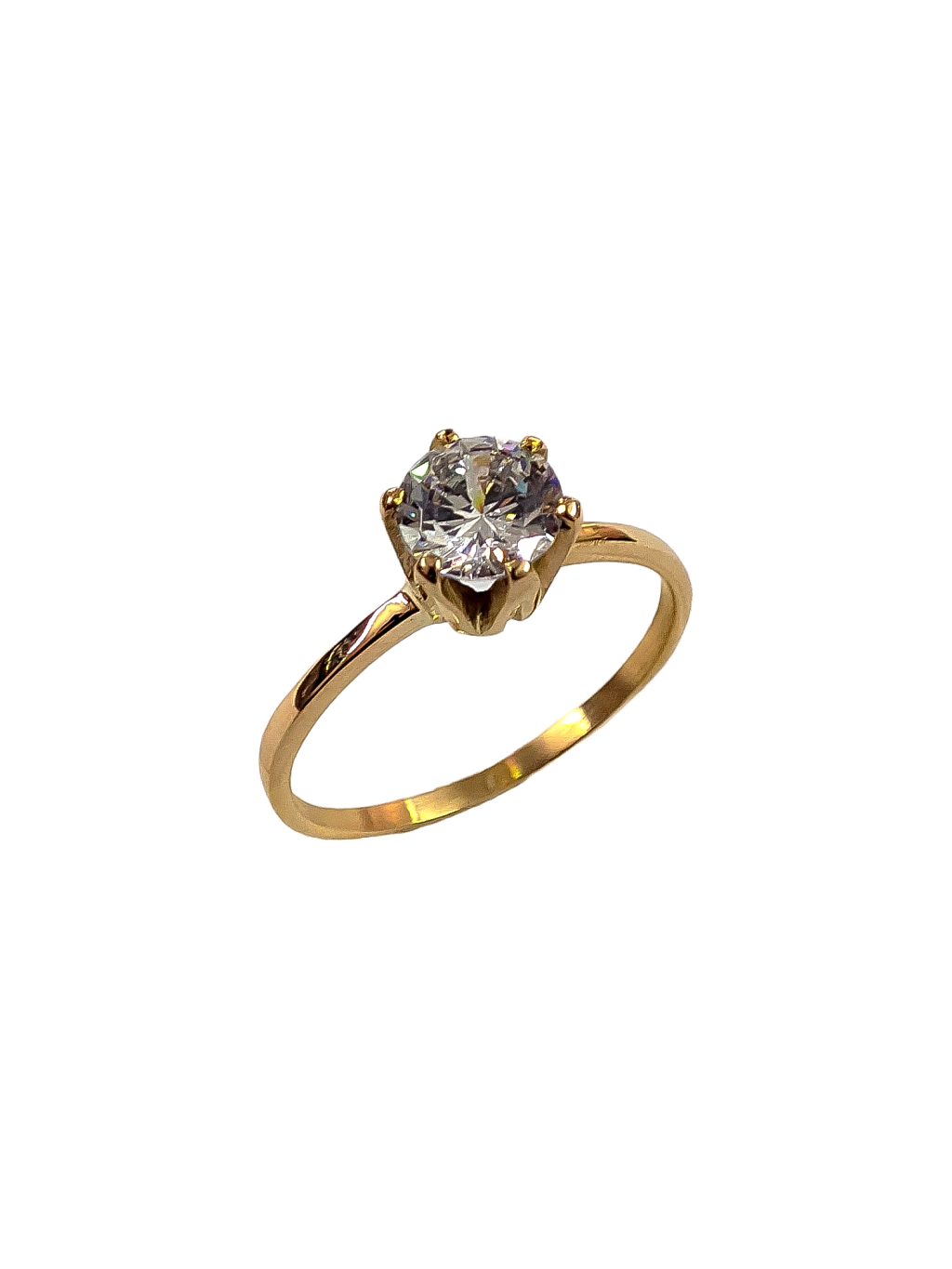 Este anillo solitario en oro amarillo para mujer cuenta con un cubic zirconia, un brillo deslumbrante y un peso total de 2,2 gramos.