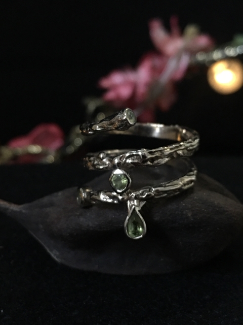 Tiene una ramita que se puede usar mas arriba o abajo, haciendo que el anillo luzca mas largo.