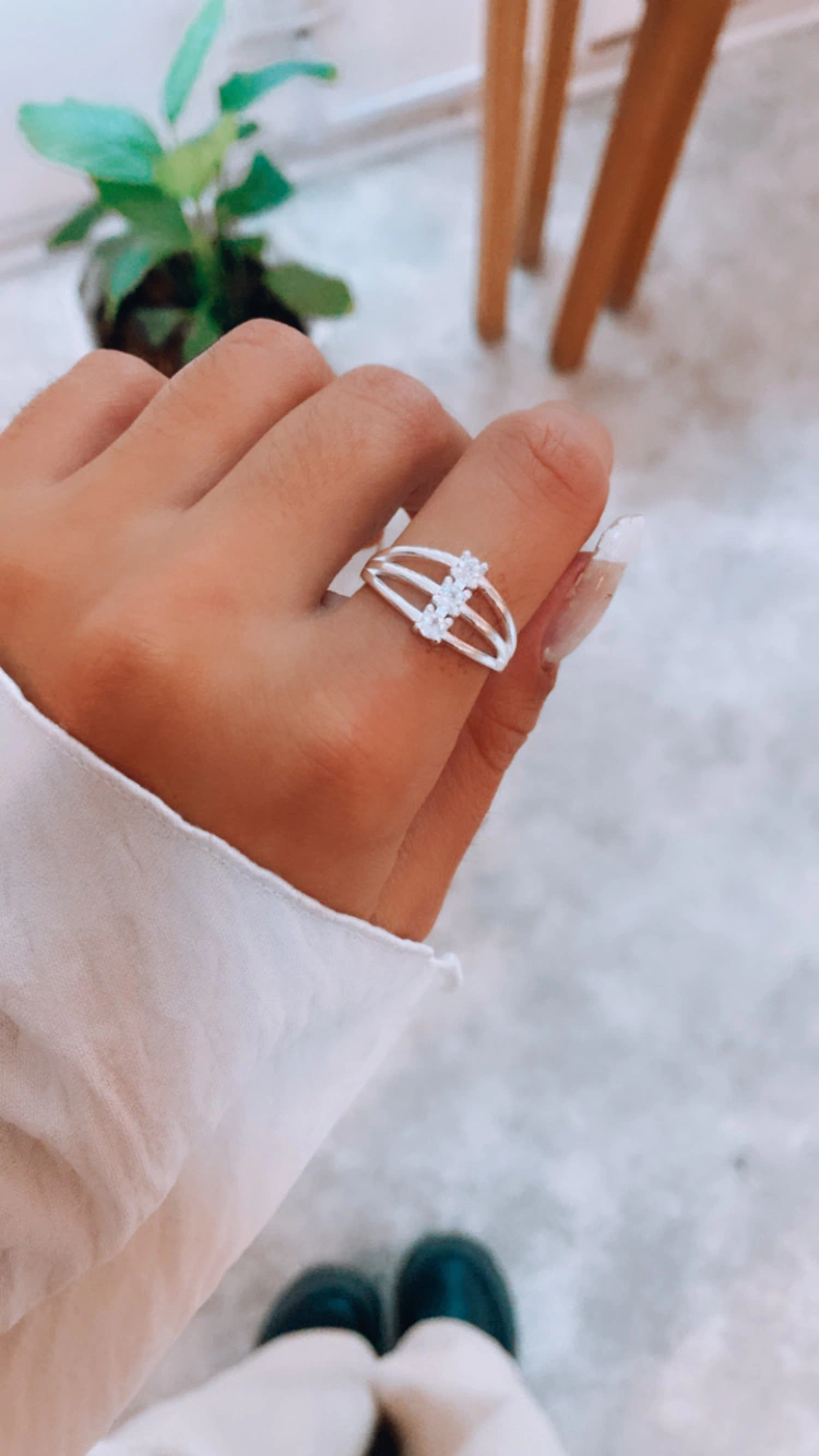 ANILLO CON 3 GRIFAS EN MEDIO Y LISO AL COSTADO DE ACERO BLANCO / NRO 16