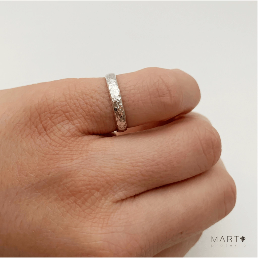 Este anillo lo podés llevar solo o de a dos como anillo de compromiso o de boda.Mishka significa regalo de amor, es por eso que es el regalo perfecto para demostrarlo.Anillo de plata 925 de media caña de 3 x 1.5 mm texturada con cincel.El tiempo de entrega puede ser de hasta 10 días dependiendo del stock disponible.Buscá tu medida en la secciónMedida de Anillos