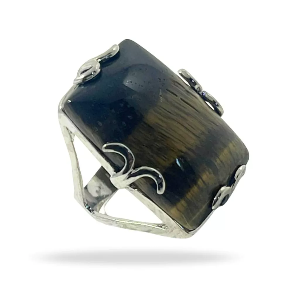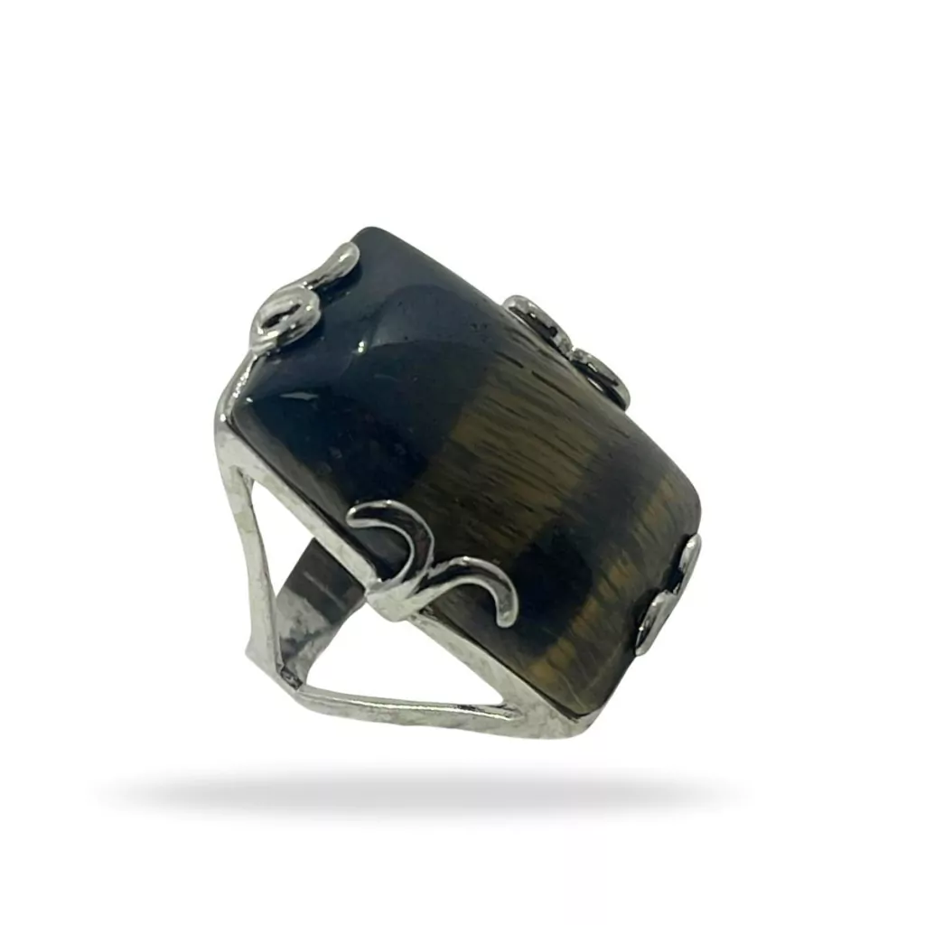 Fabricado en Gold Filled Blanco Envejecido con Ojo de Tigre Engarzado, es perfecto para lucir en cualquier ocasión.