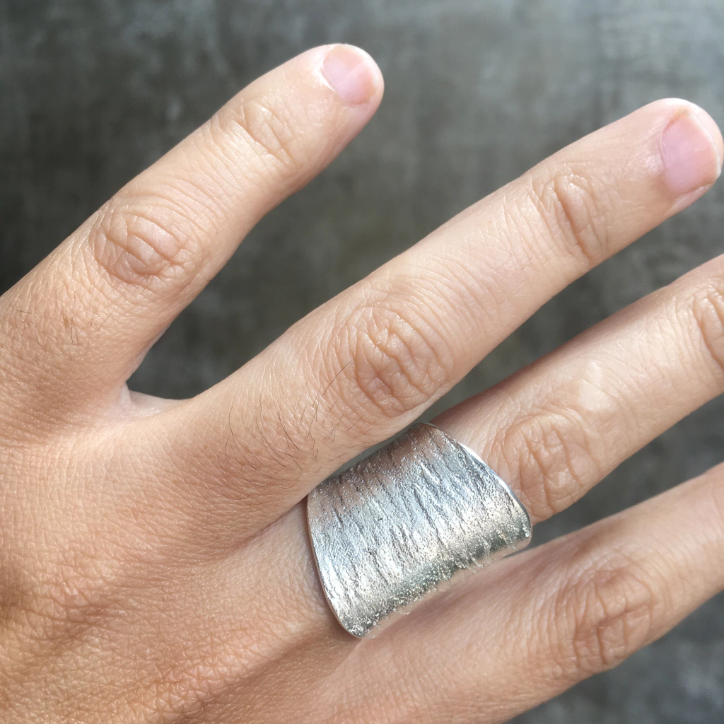 Anillo realizado a mano en plata 925.Disponible en todos los talles, una vez realizada la compra podes pasarnos la medida.Para saber cual es tu talle, segui nuestro instructivo.https://flotajoyeriacontemporanea.mitiendanube.com/medidas-de-anillos/Todas nuestras piezas son únicas, y están realizadas a mano por nosotros en nuestro taller en el barrio de Almagro.Todas las piezas tienen cambio por talle o modelo.Material: Plata 925Terminación: Pulido SatinadoPeso: 11 gramos aproxLa imagen de este producto es de carácter ilustrativo.
