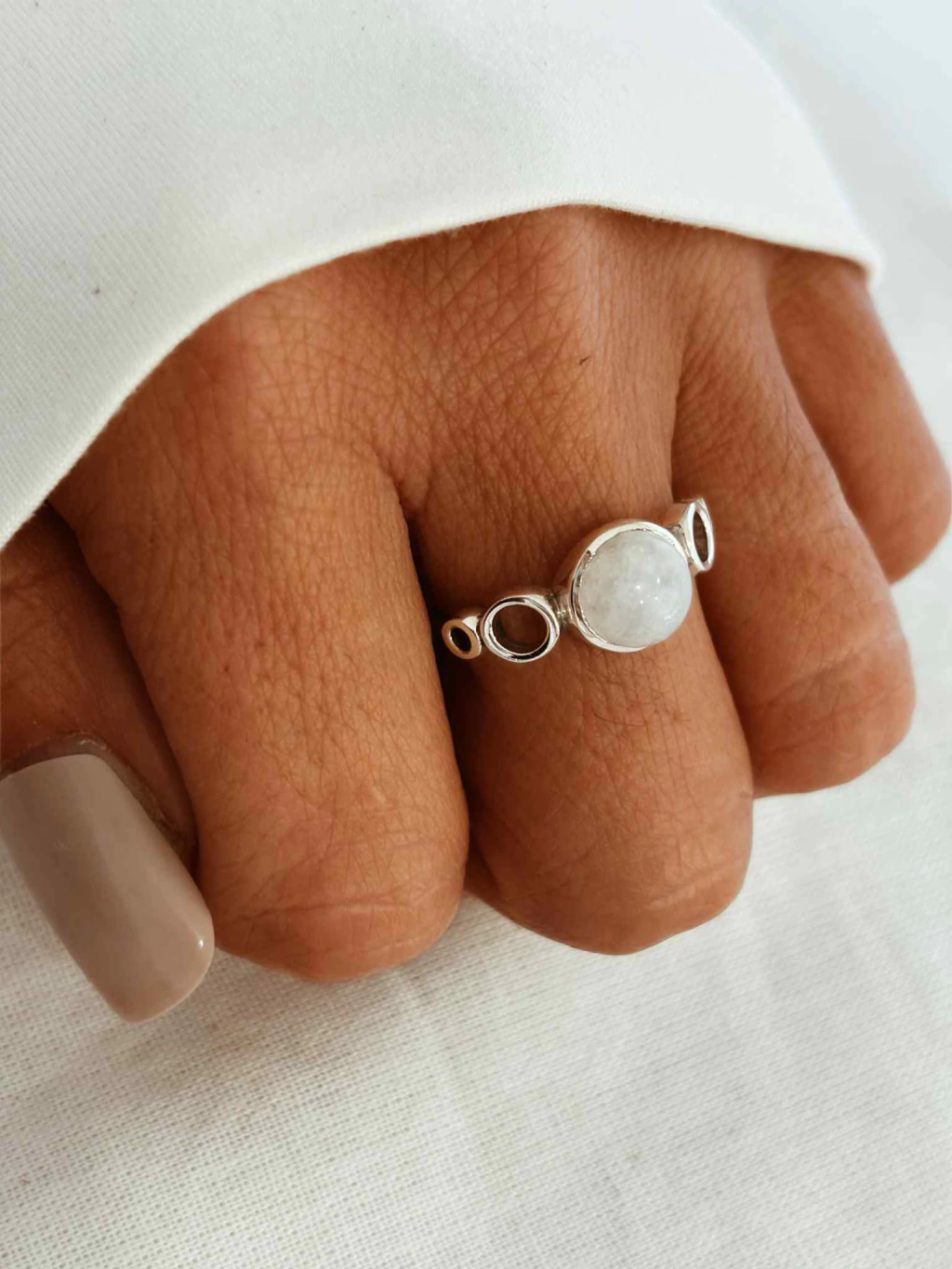 Anillo de plata 925 y piedras naturales.PIEDRA DE LA LUNAIMPORTANTE- Estos modelos de anillos macizos los personalizamos a tu medida. Por favor te pedimos que aclares tu talle cuando estes por realizar tu compra, en el espacio "Nota de Pedido" que se encuentra cuando estas por finalizar la misma¿No sabes cual es tu talle? Te dejamos una pequeña tabla que refleja las diferentes medidas y como tomarlas:1- Tomar una regla y medir el diametro de algun anillo que te quede comodo (no incluir el borde, tomar la medida por el medio del anillo)2- Una vez tomada la medida (la cual será en mm) buscamos la misma en el cuadro3- Esta medida representa un talle4- Listo! Ya sabes tu talle