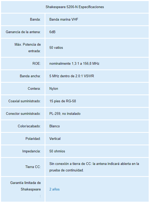 Gemelo de: Antenas Shakespeare Styles 5205 y 5207 CB Marine.