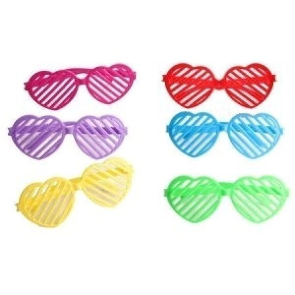 Producto: Anteojos Plastico CorazonColores: Azul,Rojo,Violeta,Amarillo,Fucsia,VerdeCantidad: 10 unidades.Material: Plastico