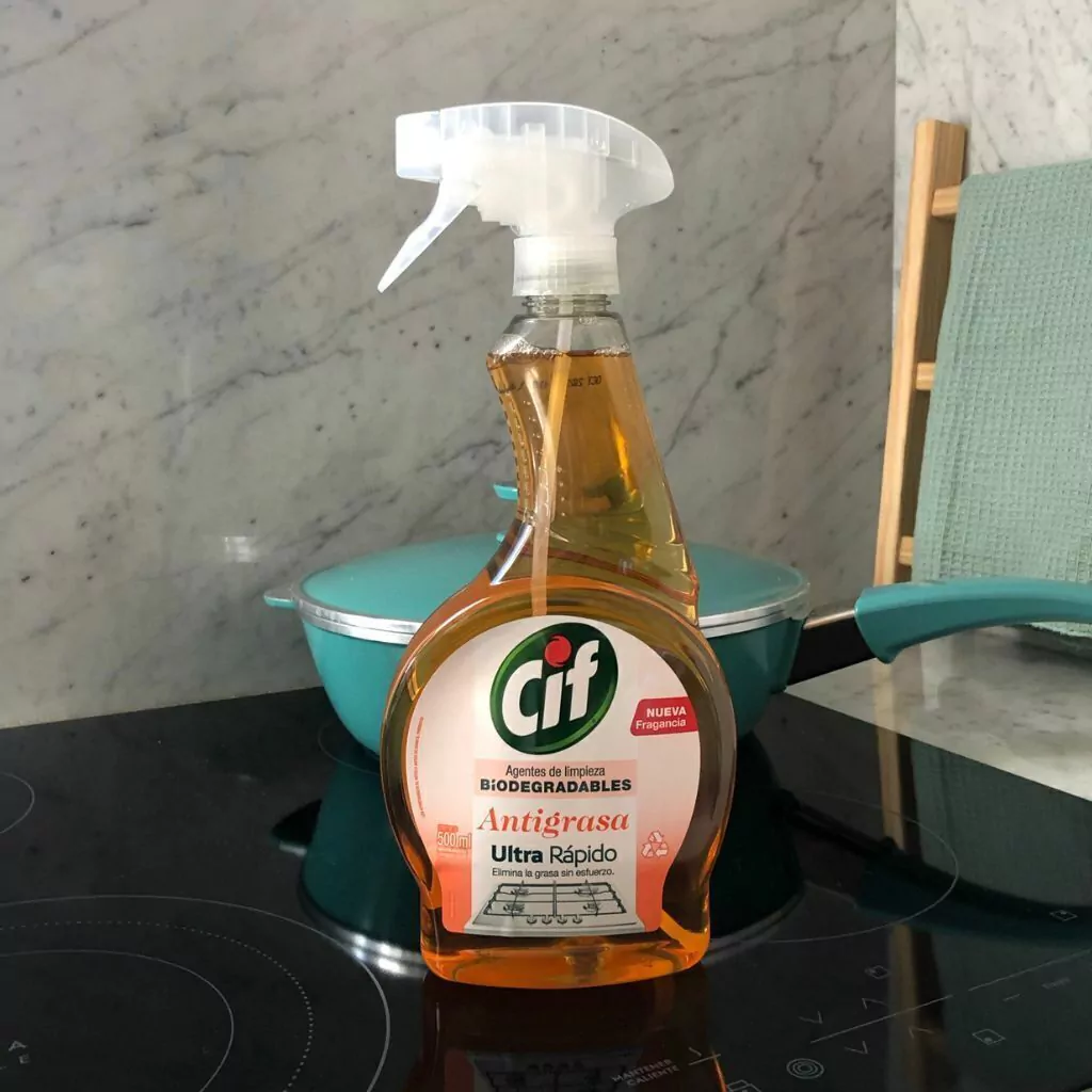 Limpiador líquido CIF antigrasa biodegradable de rápida acción. Brinda una limpieza fácil y eficiente realizando un menor esfuerzo. Elimina la grasa de inmediato (10 segundos) incluso la quemada.