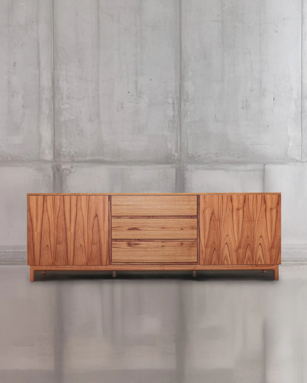 Por el cuidado ambiental utilizamos madera maciza para las partes estructurales (base/patas) y en MDF enchapadas en madera natural.
