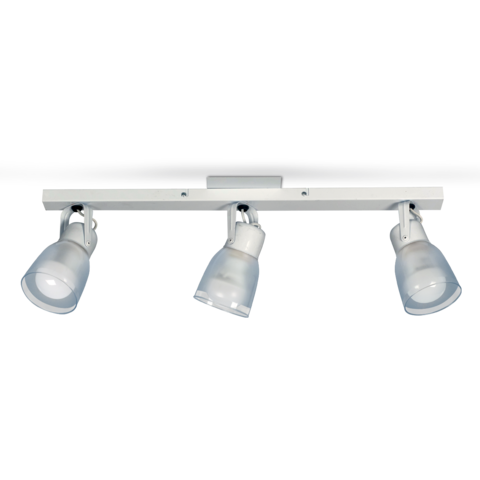 Linea MercedesAplique de 3 luces base regleta de 60cmcon tulipa de PolicarbonatoColor : Blanco - PlataE-27 apto Ledno incluye lamparaMarca San Justo