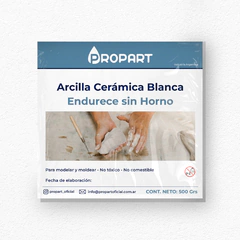 Arcilla cerámica en pasta color blanca. Endurece sin horno en 48/72hs