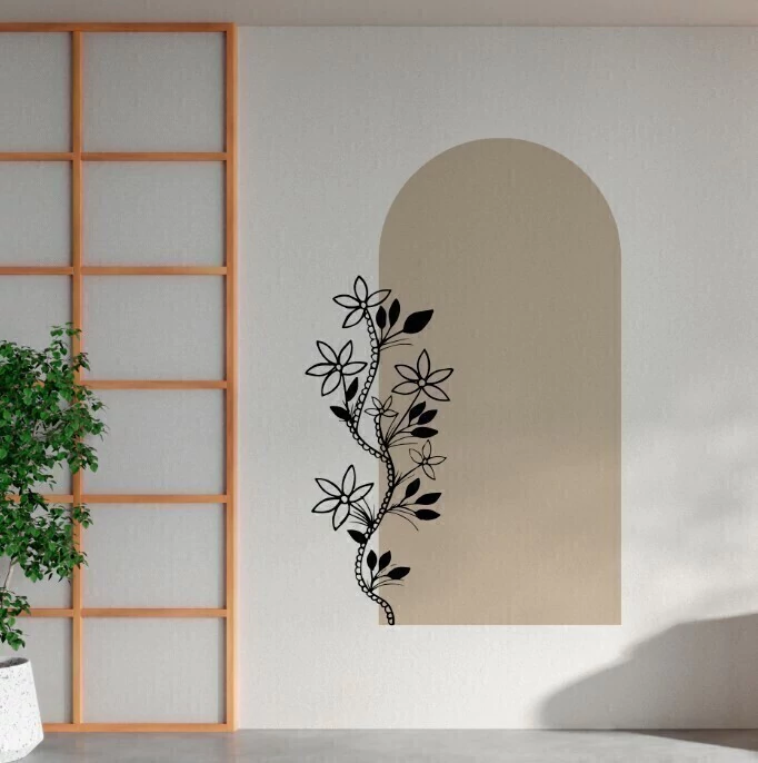 Arco de medio punto liso con flor en detalle negroEl arco de color mide 120x60cm, la flor 90x35cm.La flor viene por separado, la podes pegar como en la imagen o como vos prefieras!el color del arco es a elección, una vez realizada la compra nos especificas el color que lo queres!