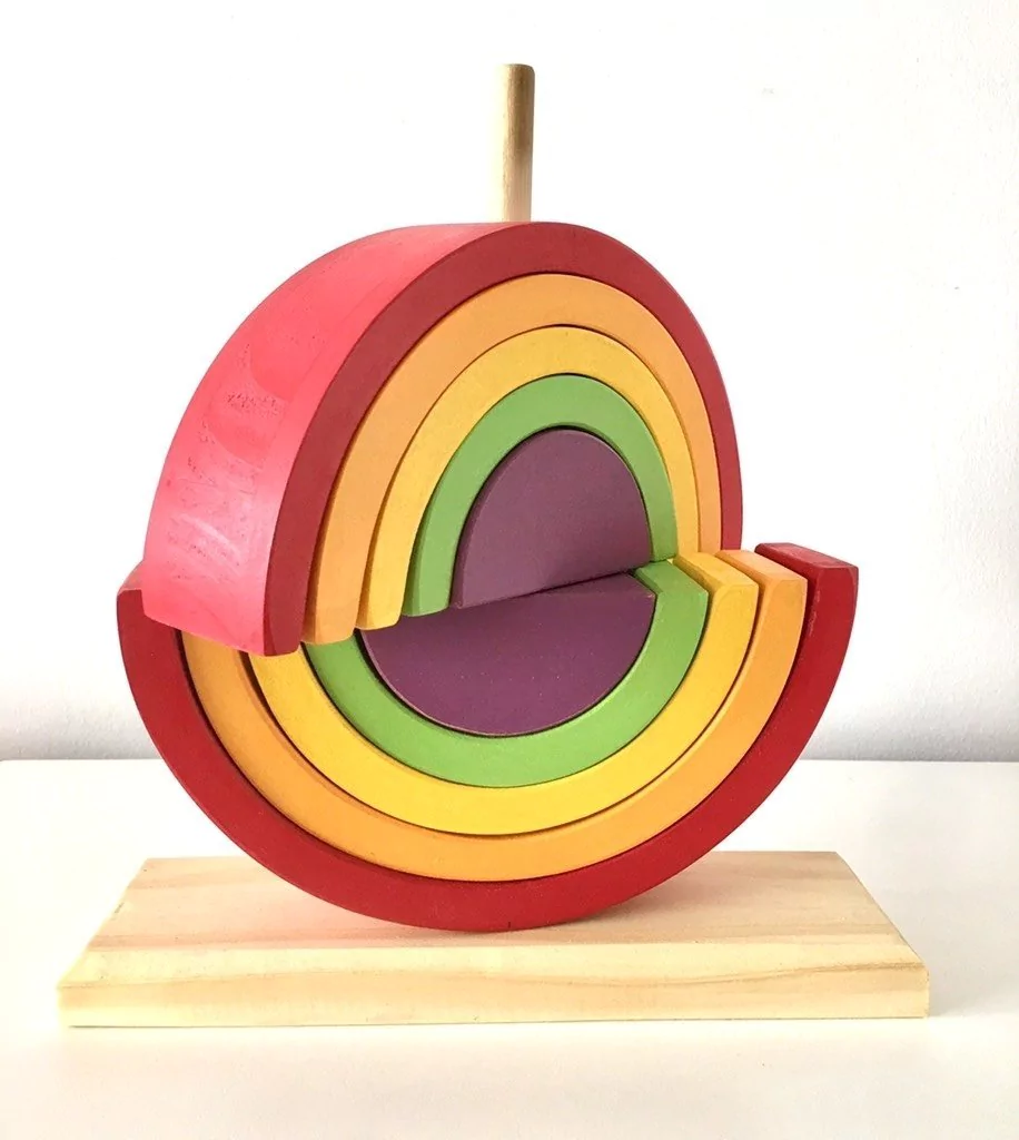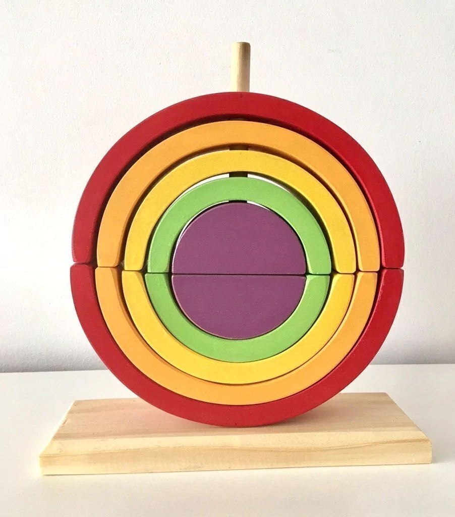 Arco iris circular de madera, 10 bloquesMedidas: 23 de ancho x 27 de alto x 7 de profTodos nuestros precios incluyen IVAAtencion: todos nuestros productos son por encargo. Tiempo de entrega: entre 45 y 55 d?as