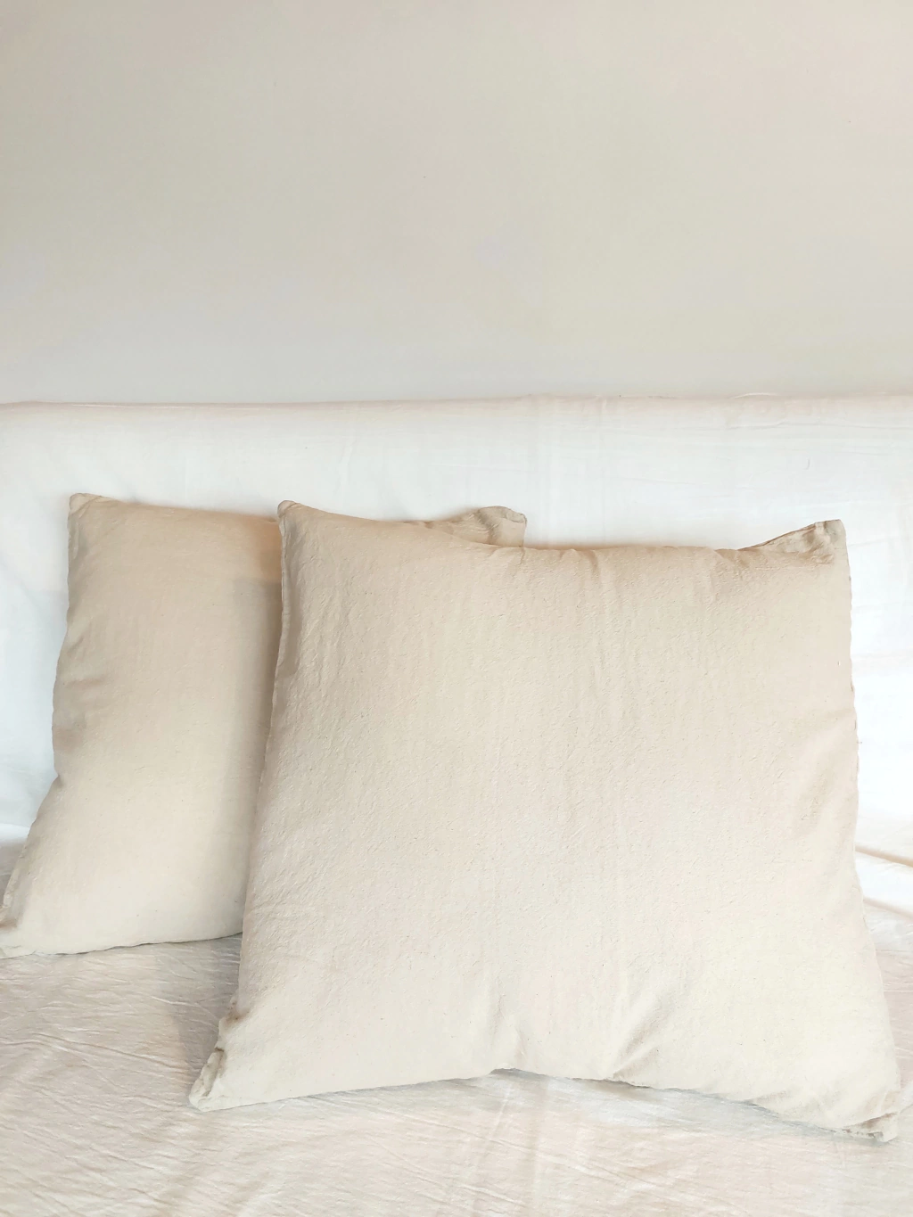 Funda tusor arena para almohadón 50x50cm, solapado atrás.