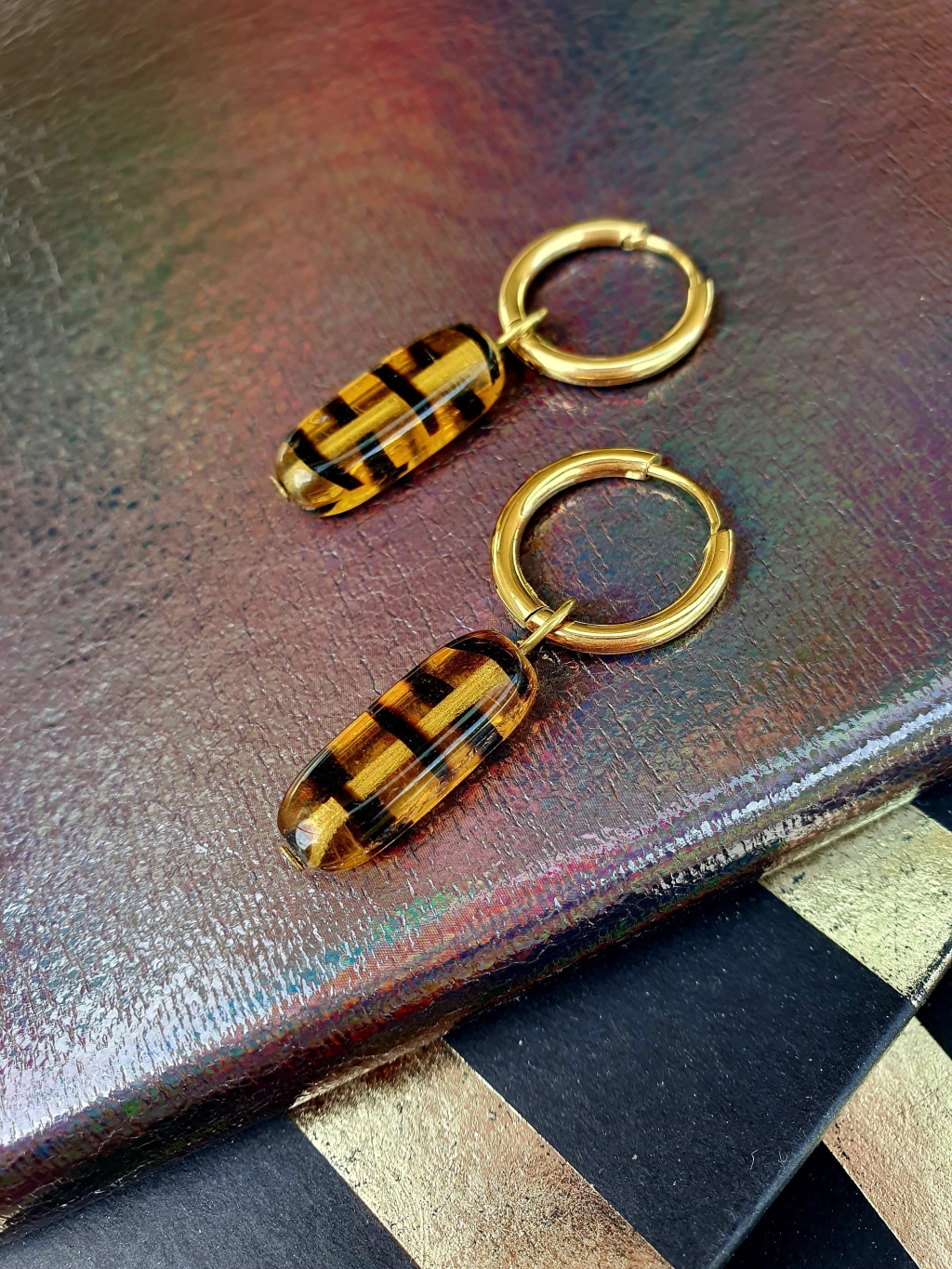 Argollas de acero con pieza de vidrio soplado color caramelo