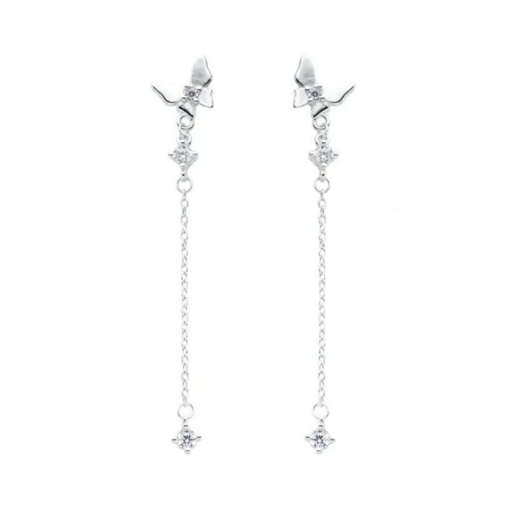 PAR DE AROS PASANTES MARIPOSA CON ZIRCONIAS CRYSTAL EN PLATA 925
