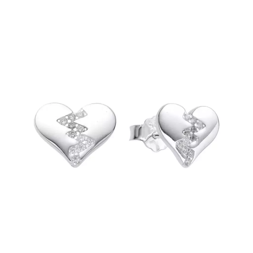 PAR DE AROS PASANTES CORAZÓN CON DETALLES EN ZIRCONIA CRYSTAL EN PLATA 925
