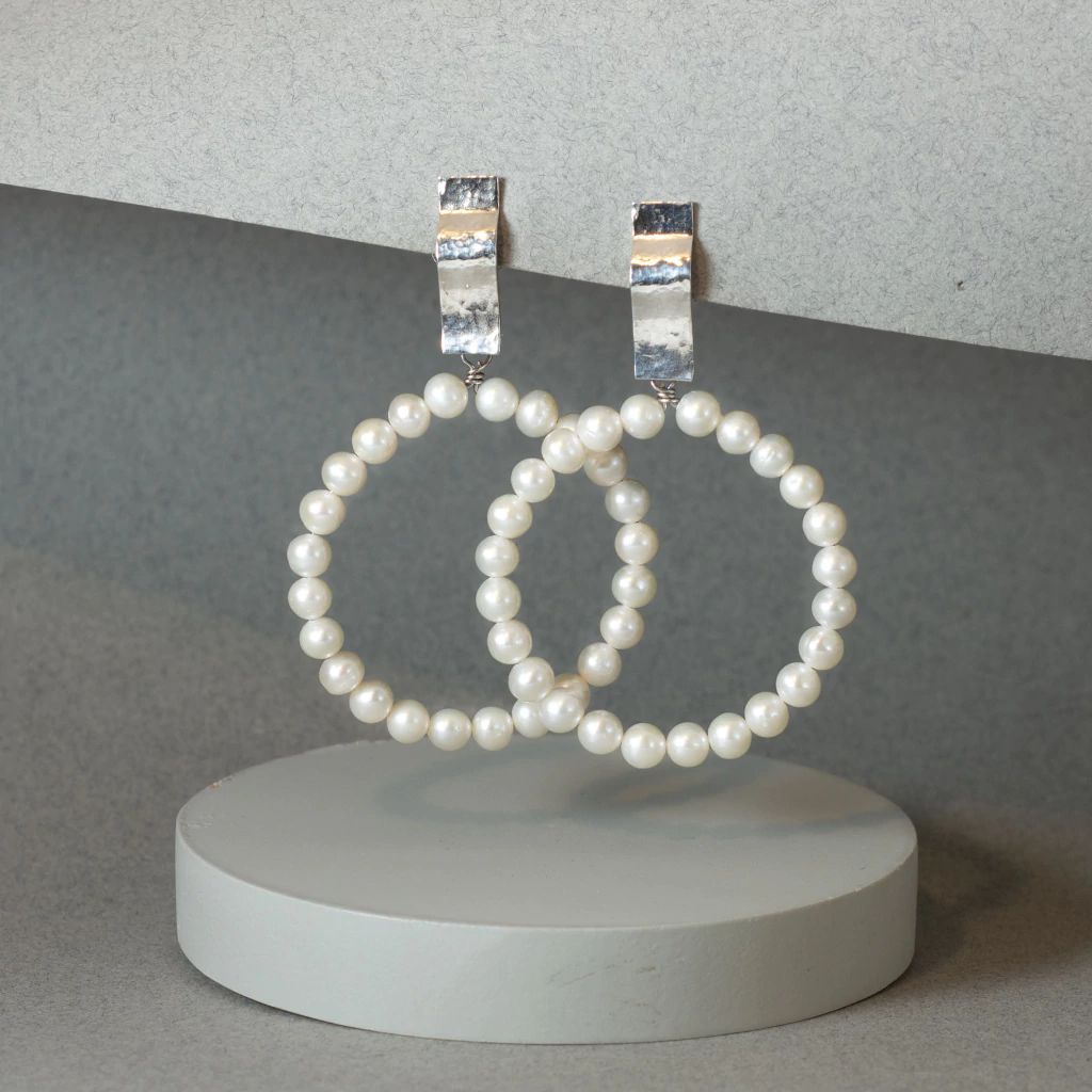 Confeccionados con bases de plata 925 martelée y argollas de perlas naturales y plata. o cora.lconsultar opciones de piedrasLargo 7,5cm