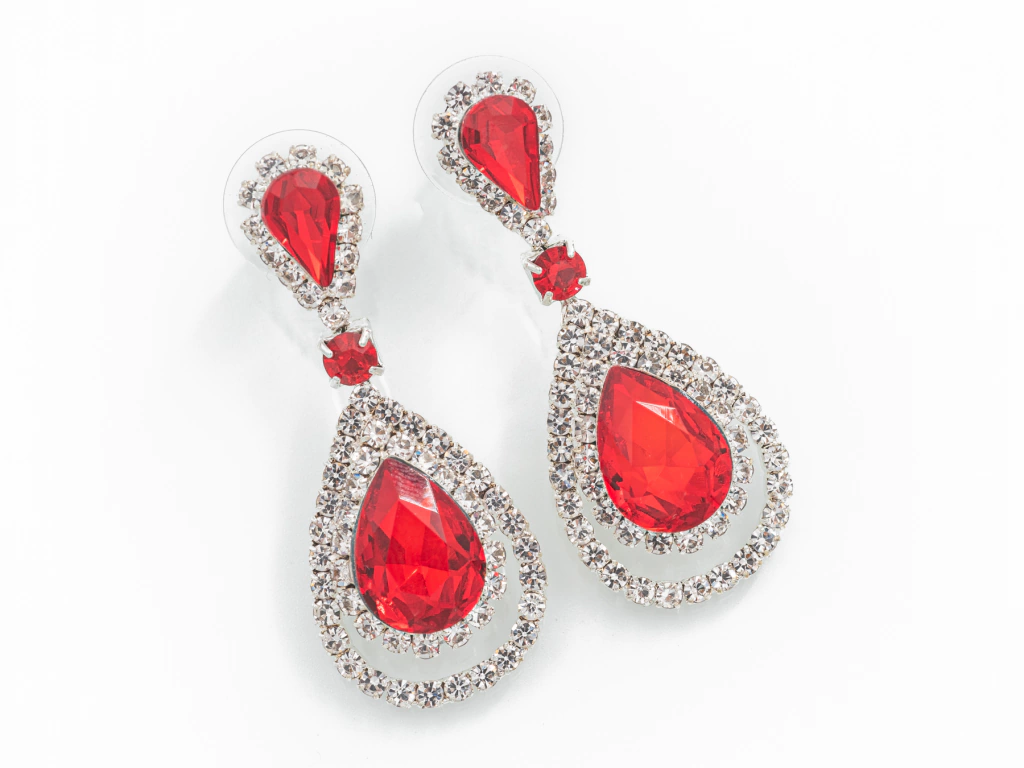 Aros Premium confeccionados con Piedras Strass de Cristal en color Transparente y Rojo, facetadas, y aleación de metales con Baño de Plata. Gracias a esto la diferencia en la calidad y el brillo que poseen. Son libres de Níquel, por lo que es poco probable que genere alergia. Su diseño es una Gota invertida de la cual cuelga Piedra Circular pequeña y Gota con Virola calada. Pasantes, colgantes. Largo 4,5cm y 2cm de ancho.Codigo 35351.