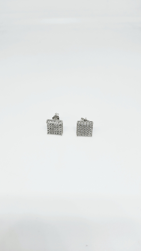 Aros cuadrados de 8mm con mini zirconias incrustadas, enchapados en oro blanco