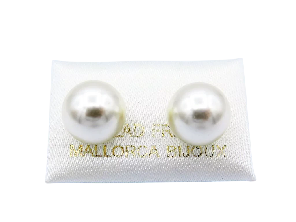 Aros Perla de Mallorca color natural, pasantes con enchapado en Oro. Tamaño de Perla n°12.