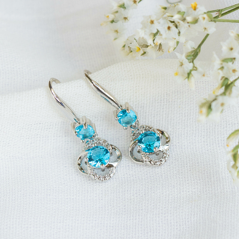 Aros Colgantes PlataDiseño con dije de flor de circonitas turquesas y blancas. Tamaño 30 mm largo.Material: Plata 925Color: PlateadoLosAros Aoforman parte de la nueva colección de Plata de Brilla un Deseo. Ponete los aros y brillá con ellos!