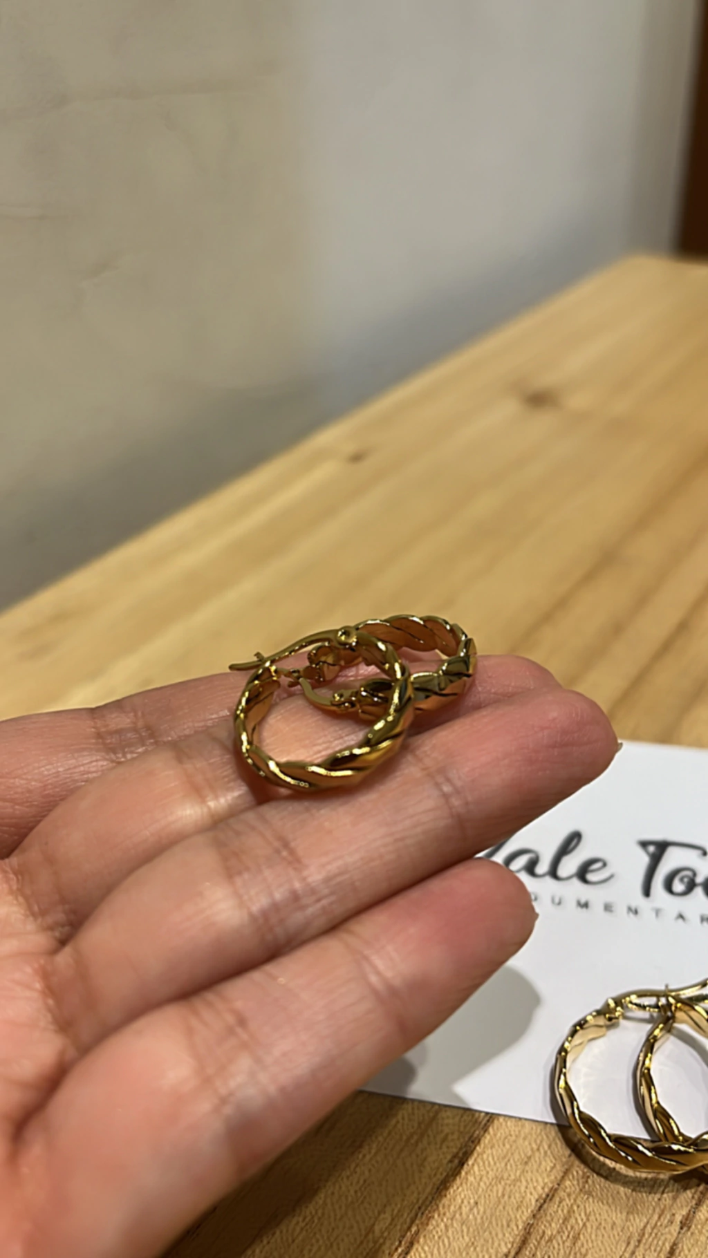 Aros de acero dorado, super delicados.-Medidas: 2 cm * 2 cmCuidados: No exponer a liquidos de limpieza, perfumes y cremas o shampoo - Por ser un baño, el color blanco se puede ir yendo con el uso. - El tiempo de duración varía con el trato que el accesorio recibe y el ph de cada persona.-