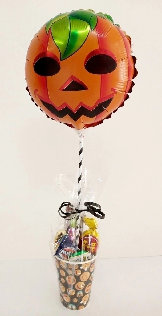 🎃Globo de Mylar de 9"/22,5cm de calabaza de halloween.🎈Inflada con aire, con palito y portaglobo.🍬Vasito con golosinas:🍫Bon o bon🍫chocolate misky🍫bananita dolca🍫bombón felfortMEDIDAS:alto aproximado de 55cmancho aproximado de 22cm.Importante:Las golosinas pueden variar dependiendo la disponibilidad actual. De todas formas, siempre se repondrá por una de igual o mayor valor, y consensuando previamente con el cliente.Al entregarse el arreglo ya inflado y terminado, tal cual se ve en las imágenes,este producto sólo está disponible para las zonas de CABA, GBA y MDP. No está disponible la opción de envío a todo el país por correo.