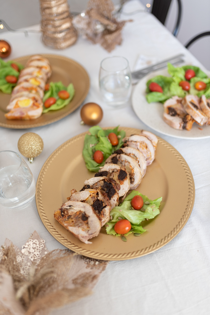 Relleno: jyq, ananá, manzana, ciruelas, nueces, almendras y mani.