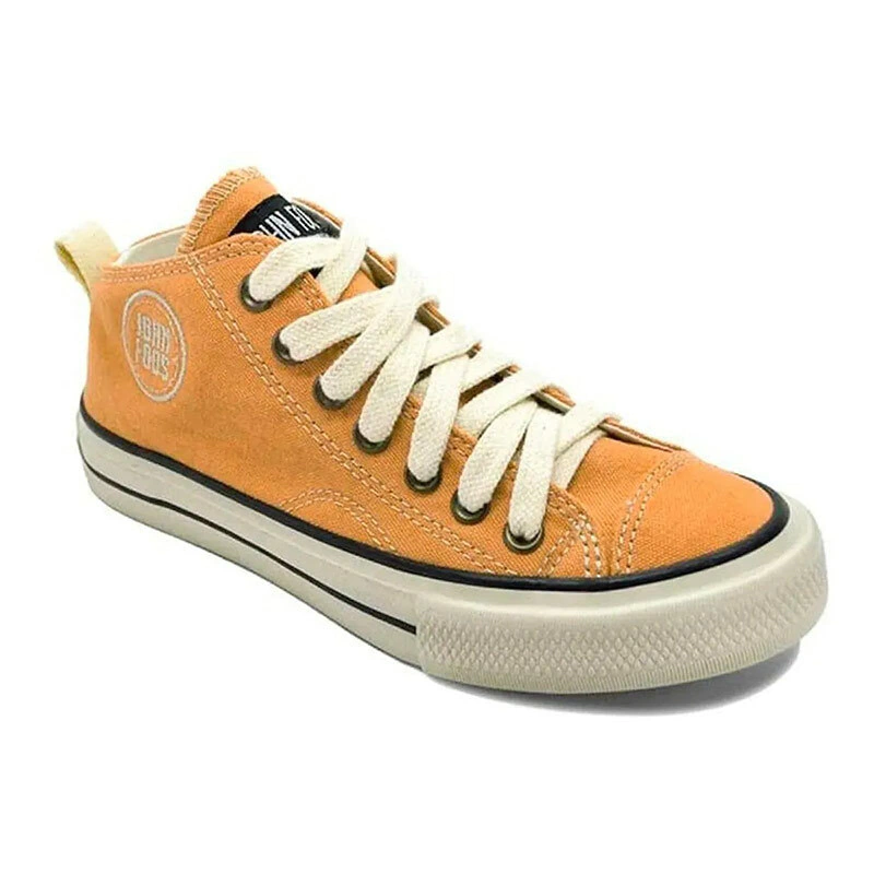 Modelo icónico John Foos de la década del ´90, reeditado para el 40° aniversario de la marca.Zapatilla de media caña en lona reteñida con bordado de logo retro y detalles en cuero descarne.Capellada de lona algodón 100% reteñida color amarillo mostaza.Cañas de lona algodón 100% reteñida con bordado color gris plata.Aplique de puntera de cuero vacuno descarne 100%.Tira de talón para calce en cuero vacuno descarne 100%.Forrería 100% algodón color crudo.Etiqueta textil “heritage” negra con logo y leyenda de la marca en color blanco. Ojalillera de alumino natural.Cordones chatos 100% algodón color crudo.Costuras contratono.Plantilla extraíble de eva y base textil.Base de cacuho vulvanizado color negro.Banda alta de caucho color crudo con doble filete color negro.Puntera y cierre de talón de caucho color crudo.Contrafuerte de caucho recuperado.
