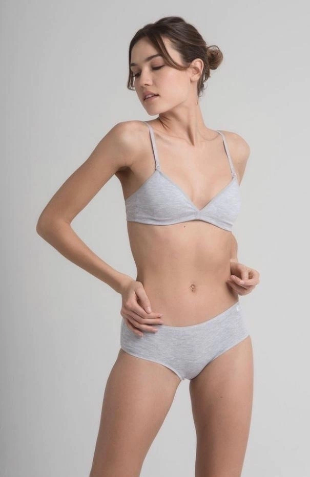 Soutien triángulo de algodón con lycra. Breteles finos regulables y desmontables.