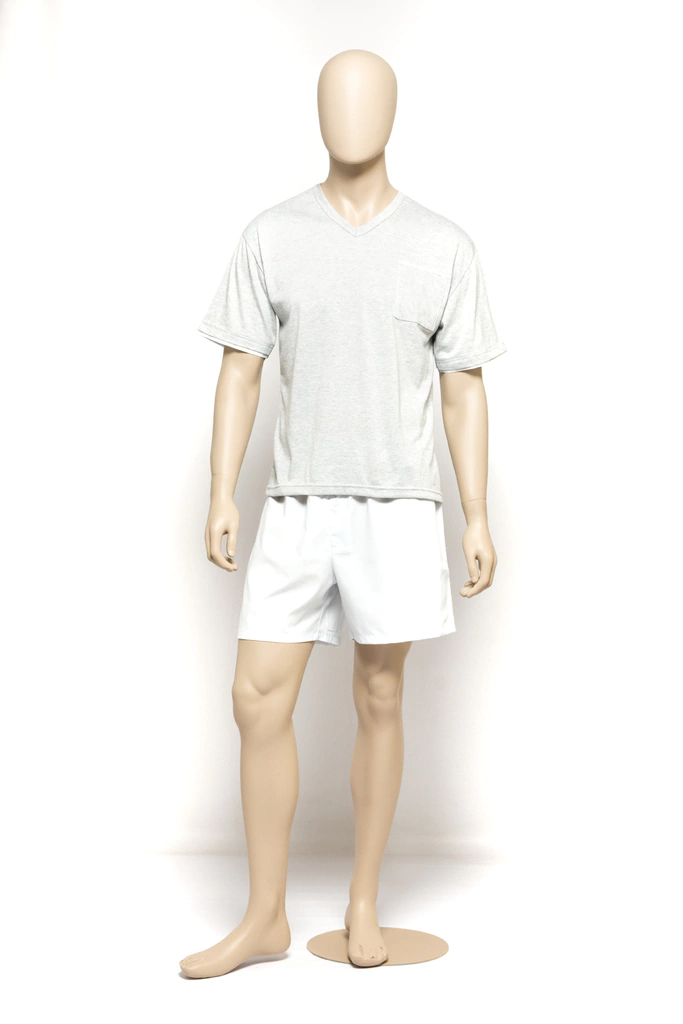 Piyama para HombreRemera manga corta, escote en V alto, en jersey de algodón puroShort en batista de algodón 65% poliester 35%Deslizá las fotos hasta la última para ver la tabla de talles