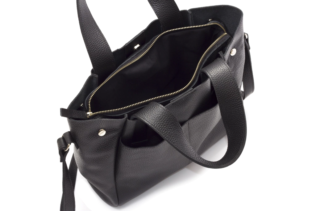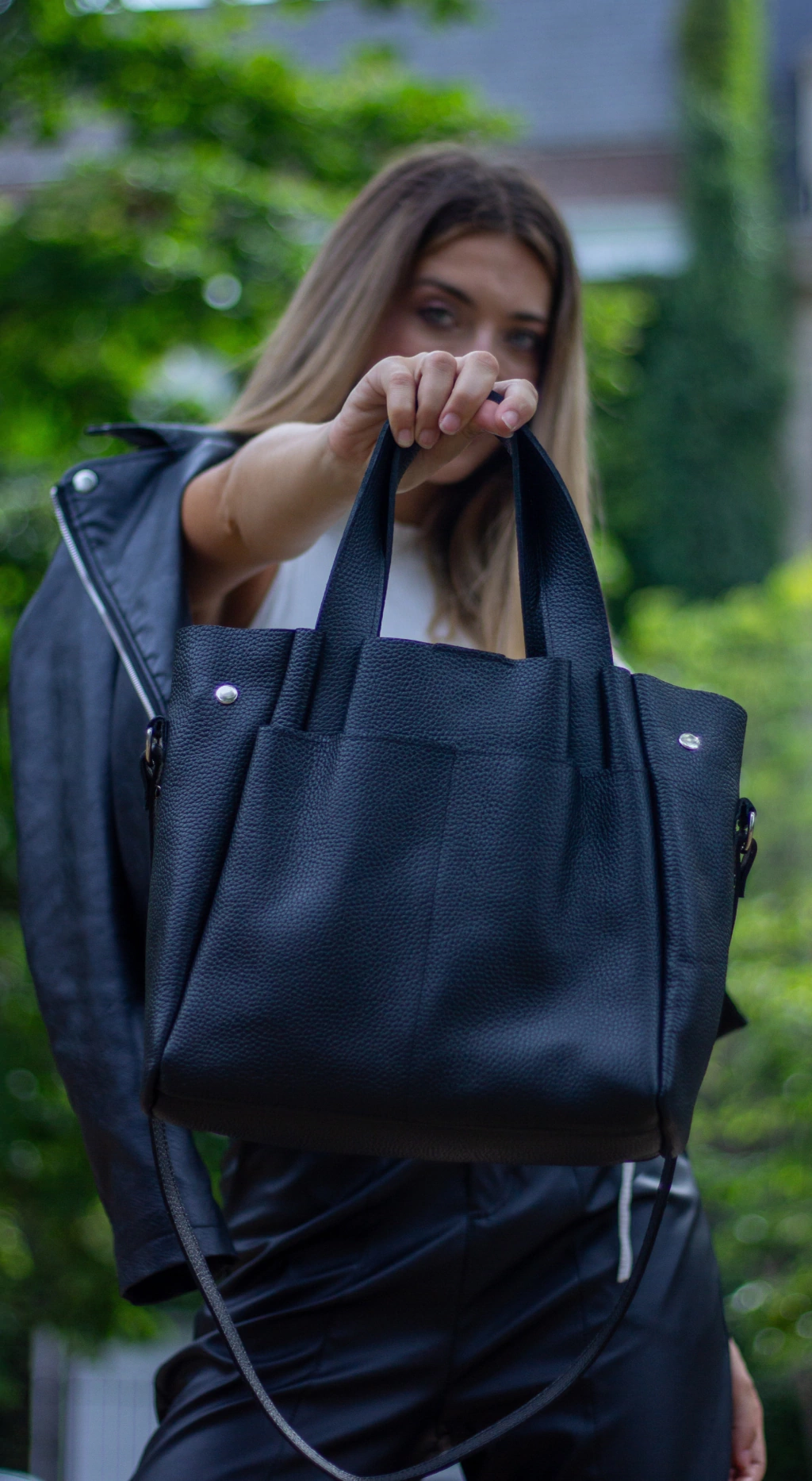 Artículo 3323: CARTERA NEGRA CON NECESER INTERNO DESMONTABLEDescubre la elegancia y funcionalidad de nuestraCartera Negra con Neceser Interno Desmontable, un accesorio que no puede faltar en tu colección. Confeccionada en%100 cuero vacuno, esta cartera es perfecta para quienes buscan un complemento de gran capacidad sin sacrificar el estilo.Características destacadas:Medidas Perfectas:Con dimensiones de 28 cm (an) x 25 cm (al) x 9 cm (prof), ofrece amplio espacio para tus pertenencias.Correas Versátiles:Incluye una correa corta de mano y una correa larga regulable, ideal para diferentes ocasiones.Practicidad en el Diseño:Cuenta con un bolsillo externo en la tapa frontal para mayor organización y un neceser interno desmontable con cierre metálico, facilitando el acceso a tus objetos.Regalo Especial:Llavero JASMINA incluido sin costo adicional.No esperes más para elevar tu estilo. ¡Compra ahora y disfruta de la combinación perfecta de elegancia y funcionalidad!