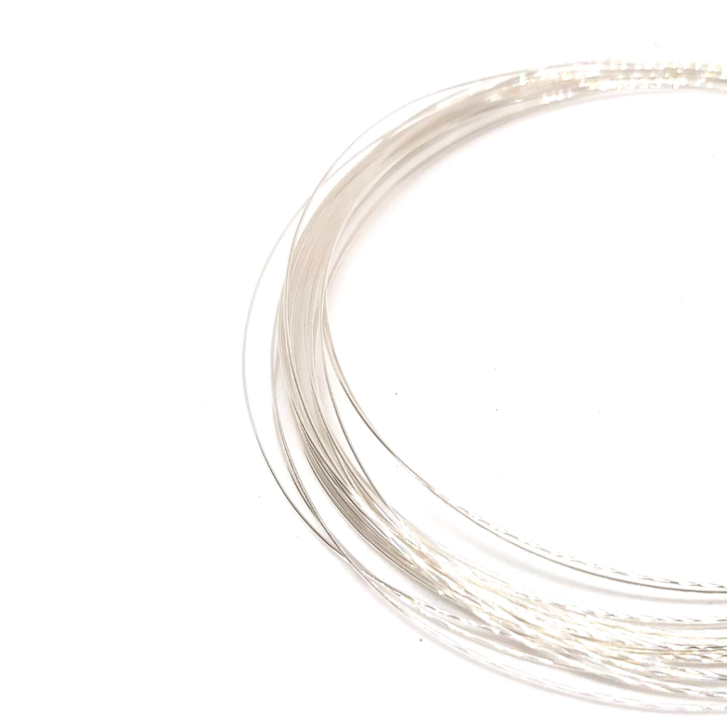 Alambre de cobre 99%, con un baño electrolítico de plata más un recubrimiento de polímero con color.