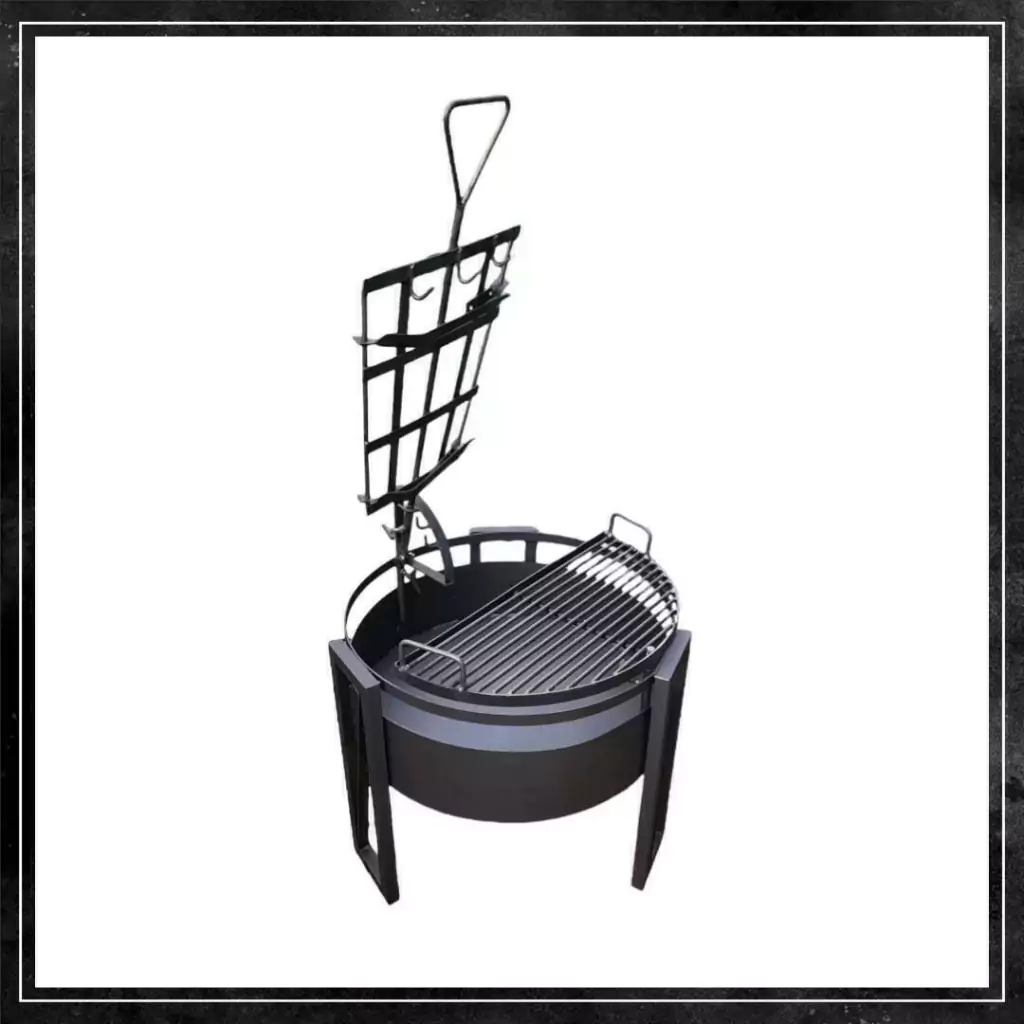 Fogonero asador redondo. Diámetro 60 cm. Espesor 5 mm. Incluye 1/2 parrilla y estaca