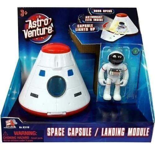 Cápsula espacial con astronauta.La capsula espacial encastra con la nave espacial que se compra aparte.Al sentarse el astronauta las luces se encienden.la figura mide 7,5cm aproxpara + de 3 años