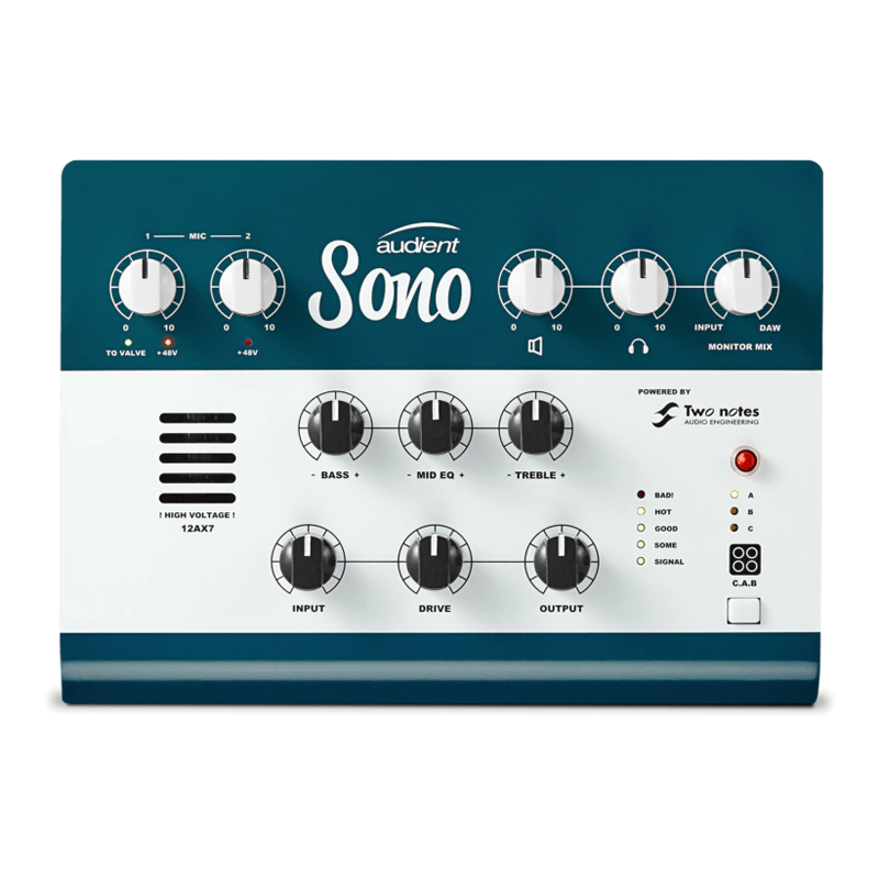 Interface de grabación para guitarraSono es el interface definitivo para guitarristas y músicos, que combina la premiada tecnología de grabación analógica de Audient con la mejor simulación de amplificadores de guitarra del mundo, creada por Two Notes.CARACTERÍSTICASInterface USB 10 entradas/4 salidasPreamplificador clásico a válvulas, con válvula 12AX7Control de tono de 3 bandasSimulación de amplificadores de potencia y recintos de Two NotesSalida Re-amp2x Preamplificadores microfónicos de consola AudientConversores AD/DA AKM de alto rendimientoEntrada ADAT para ampliaciónSalida altavoz principalSalida independiente para auricularesMonitorización con latencia cero, con Monitor MixCompatible USB2.024bit/96khzRecinto totalmente metálicoPlug ins y software gratis con ARCEN LA CAJAInterfaz de audio USB Audient Sono para guitarristas eléctricosAdaptador de corrienteCable USB tipo C a USB tipo CCable USB tipo C a USB tipo AGARANTÍA OFICIAL:1 AÑOEncontrá más información del producto"HACIENDO CLICK ACÁ"NUESTROS SERVICIOSMás de 35 años en el mercado.Lider de soluciones tecnológicas en Argentina.Contamos con servicio técnico y brindamos el mejor servicio postventa.Centro de reparación en nuestras oficinas.Ofrecemos Garantía en todos nuestros productos.Showroom en Ciudad Autónoma de Bs. As.