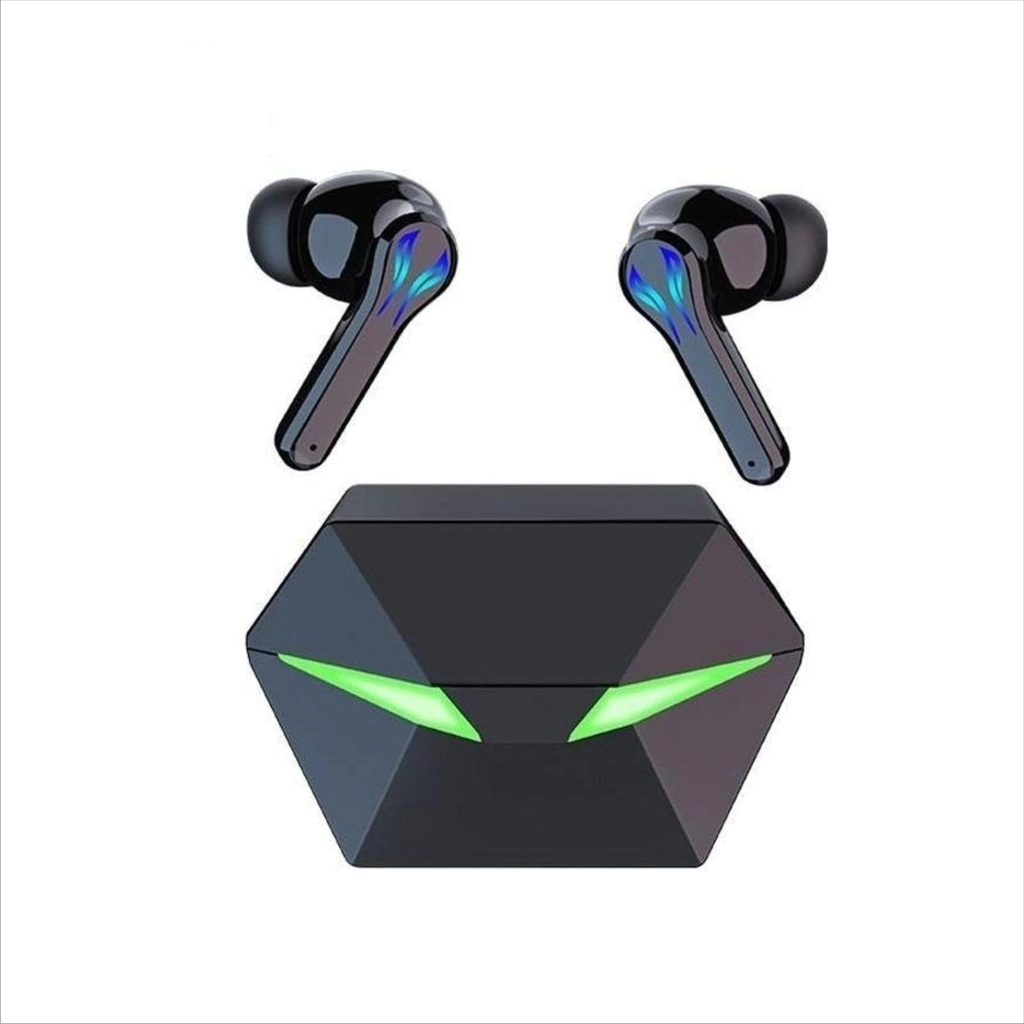 - Auriculares con Tecnología TWS (True Wireless Stereo)- Tecnología Inalámbrica versión 5.0- Recepción Inalámbrica con alcance de hasta 10 metros- "Botón Multifunción": Control de Volumen, Play/Pause, Anterior/Siguiente y Recepción de Llamadas en ambos Auriculares totalmente táctil- Atiende llamadas por Sistema de Manos Libres con Micrófono en cada Auricular- "Low Latency" cualidad ideal para Gaming- Auto On & Auto Pairing- Estuche/Cargador con capacidad de carga de 300mAh- Funcionan con Batería de 40mAh en cada Auricular- Recarga a través de 2 mini-polos por cada Auricular- Tiempo de carga: 2 horas- Incluyen Cable USB/USB Type-C DC 5V para recarga de Batería que se conecta a un Adaptador 220V o a una PC- Diseño Gamer con RGB LEDS tanto en el Estuche como en cada Auricular- Tamaño "Ultra-Small" que lo hace absolutamente cómodo y portable