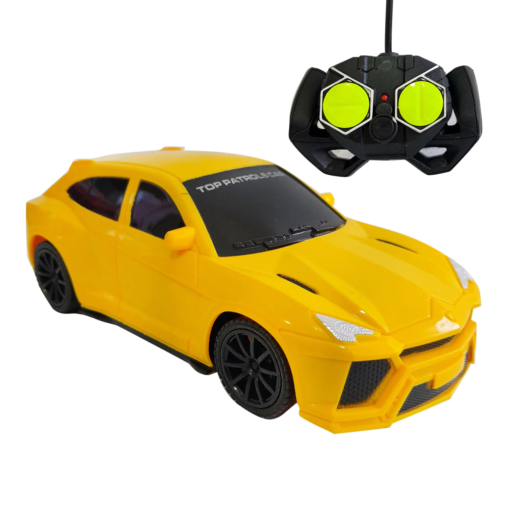 Auto Deportivo a Control Remoto. Escala 1:24. Con gran reacción y velocidad. Súper divertido para los más chicos. Posee las 4 funciones: Va hacia adelante, hacia atrás, gira a la derecha y a la izquierda.Material: Plástico con ruedas de goma (lo que permite aferrarse bien al piso).No posee luz.Para niños mayores de 5 años. Permite el desarrollo de la interacción entre los niños, estimula la imaginación, la comunicación y la capacidad de pensamiento. Desarrolla la curiosidad en los niños para recrear escenas de la vida cotidiana, fomentar la estimulación, la coordinación y la colaboración del niño.Posee un alcance de 10 metros.En caja.Colores: Naranja y Amarillo.El auto utiliza 3 pilas “AA” y el control remoto utiliza 2 pilas “AA” (NO INCLUIDAS)Medidas del auto: 17 cm (largo) x 5 cm (alto) x 8 cm (ancho).Medidas del Control remoto: 10 cm (ancho) x 25 cm (alto de la antena)Medidas de la caja: 26 cm (largo) x 10 cm (alto) x 12 cm (ancho)