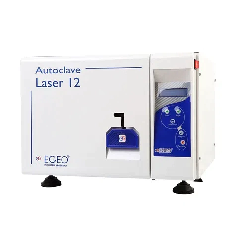 Autoclave de 12 litros de capacidad, con Secado Automático provista con Bomba de Vacío. Cuenta con dos programas de esterilización. Interior Acero Inoxidable AISI 304y exterior en Chapa Pintada, con pintura Epoxi-. Control Electrónico con Display LCD y Termocupla Pt100. Provisto con una variedad de dispositivos de protección.DetalleAutoclave CLASE B:El Autoclave EGEO genera, a través de la bomba de vacío, una presión negativa dentro de la cámara para eliminar los bolsones de aire que puedenperjudicar la correcta esterilización de los materiales. A su vez realiza el mismo proceso antes de iniciar el ciclo de Secado, optimizando el mismo. Por este motivo nuestraautoclave cumple con las características de Clase B brindando mayor confiabilidad y eficiencia de las que no lo son.Control electrónico con Display LCD:instalado en el frente fijo del equipo, eliminando las conexiones débiles presentes cuando se coloca en la puerta. Con teclado de Membrana que alarga la vida útil de los contactos por sobre los tradicionales policarbonatos.Condensador de Agua:que actúa durante el ciclo de secado, reteniendo el vacío excedente de la cámara para que éste no pase por la bomba, brindándole mayor vidaútil a la misma.Elementos de seguridad:• Termostato eléctrico: actúa por sobre temperatura.• Válvula de seguridad: actúa por sobre presión.• Burlete de silicona auto-expulsable: actúa por sobre Presión.• Puerta construida en aluminio fundido con nervaduras de refuerzo.• Sistema electrónico controlado con sensor Pt100 de gran exactitud que regula y verifica que la temperatura no exceda los parámetros de funcionamiento normales.• Alarmas sonoras y lumínicas en caso de fallas.• Fusible eléctrico que protege el equipo por cortocircuitos.DimensionesAltura: 35,5 cmLargo: 46 cmProfundidad: 53,5 cmPeso: 35 kgGarantía: 1 añoDimensiones de la cámaraCapacidad: 12 ltsDiámetro: 215 mmProfundidad: 360 mmCaracterísticasCarga y descarga frontalSecado automáticoSecado regulable entre5 y 40 min.Programas:1: 121°C – 1.5 Bar2: 134°C – 2.3 Bar