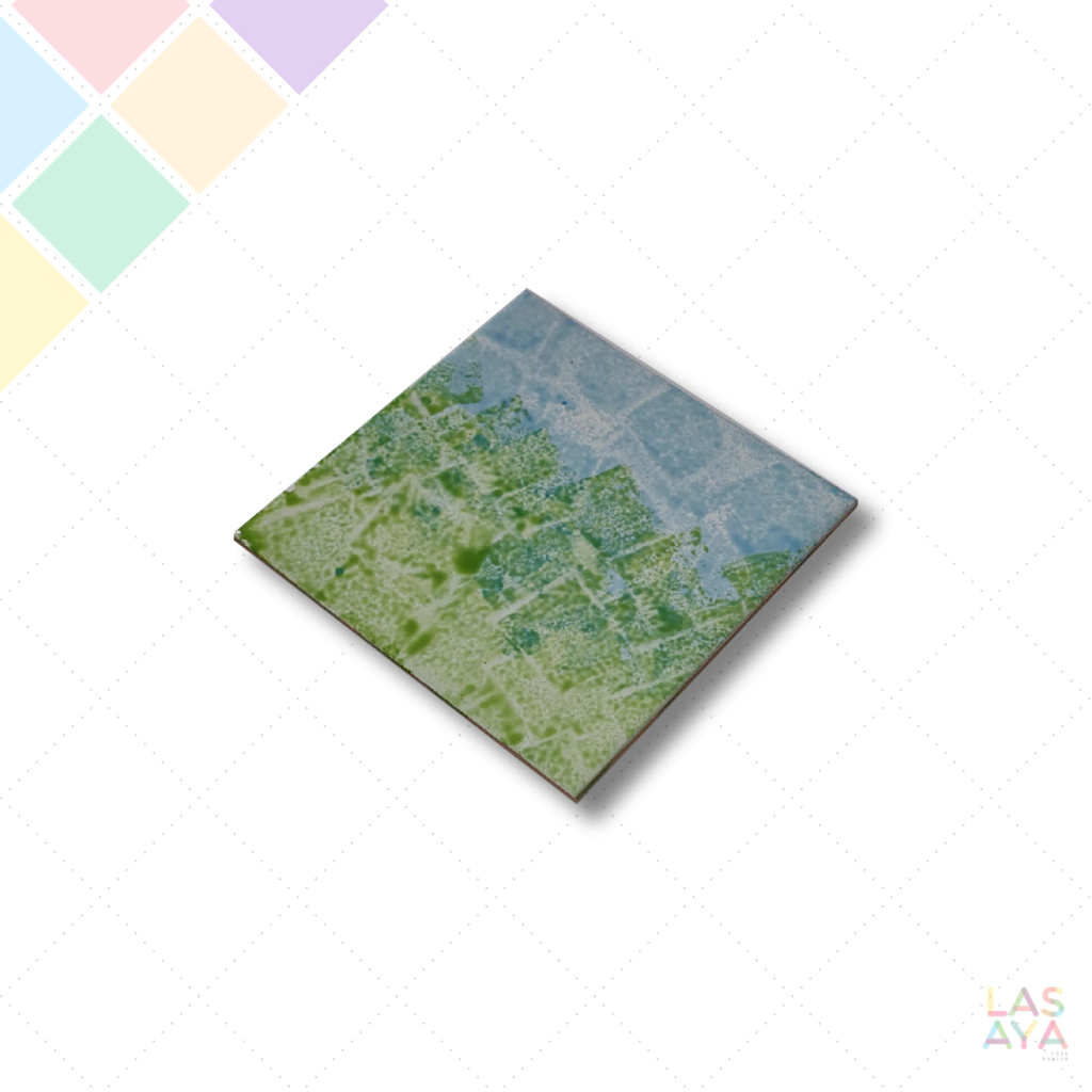 Azulejo Decorado 15x15cm Esponjeado Celeste y Verde