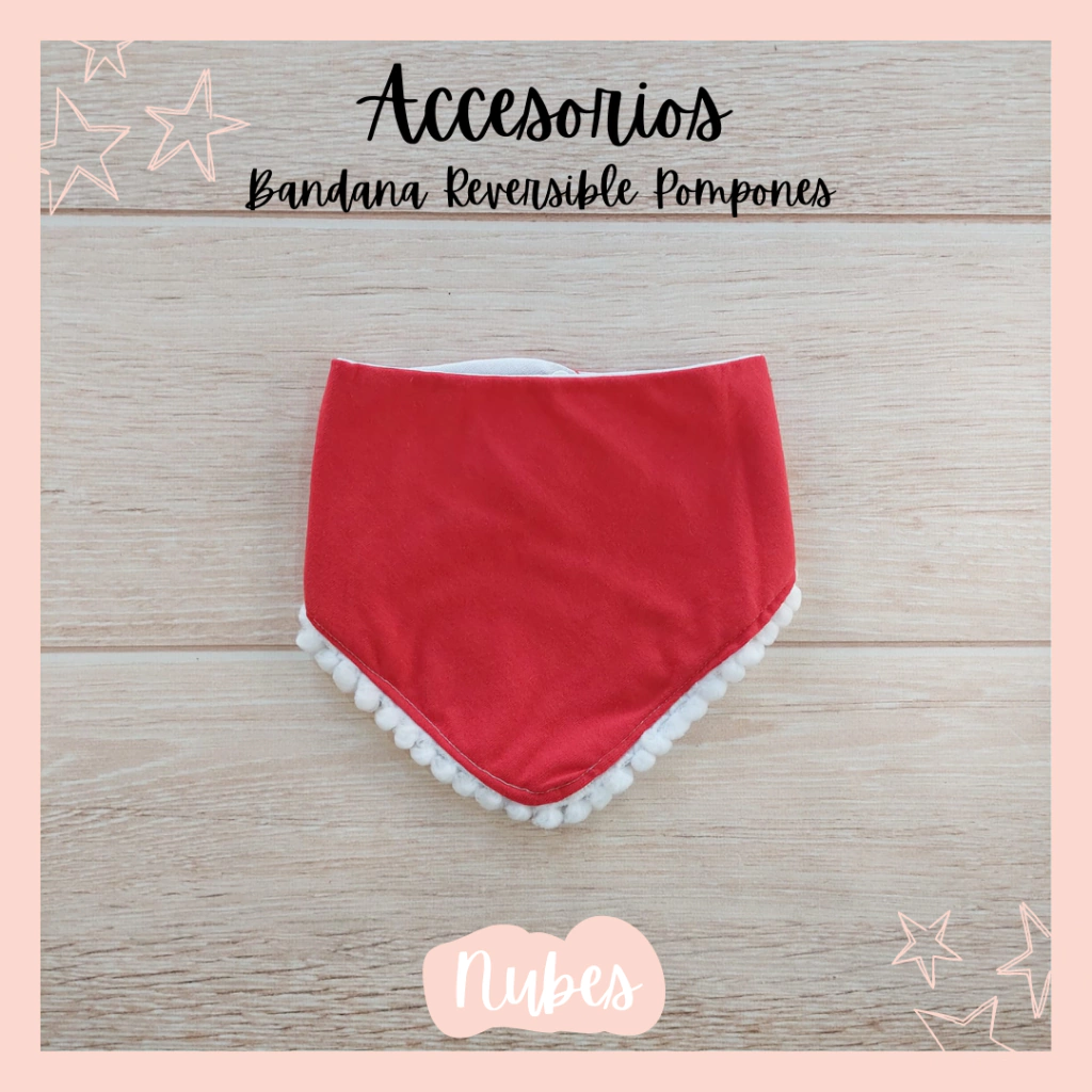 BABERO BANDANA POMPONES NAVIDAD ROJO/BLANCO