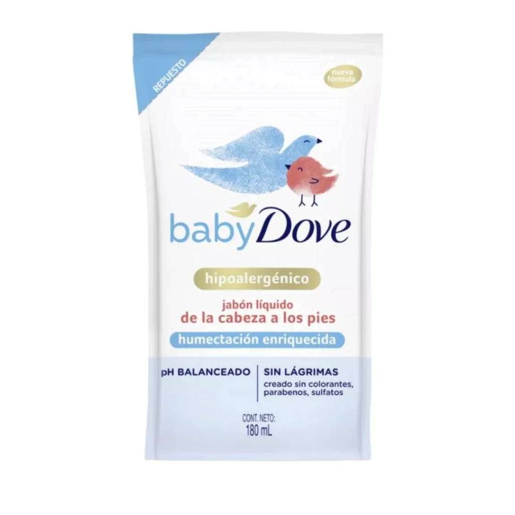 o El jabón líquido Baby Dove de la cabeza a los pies es suave, hipoalergénico y sin lágrimas
