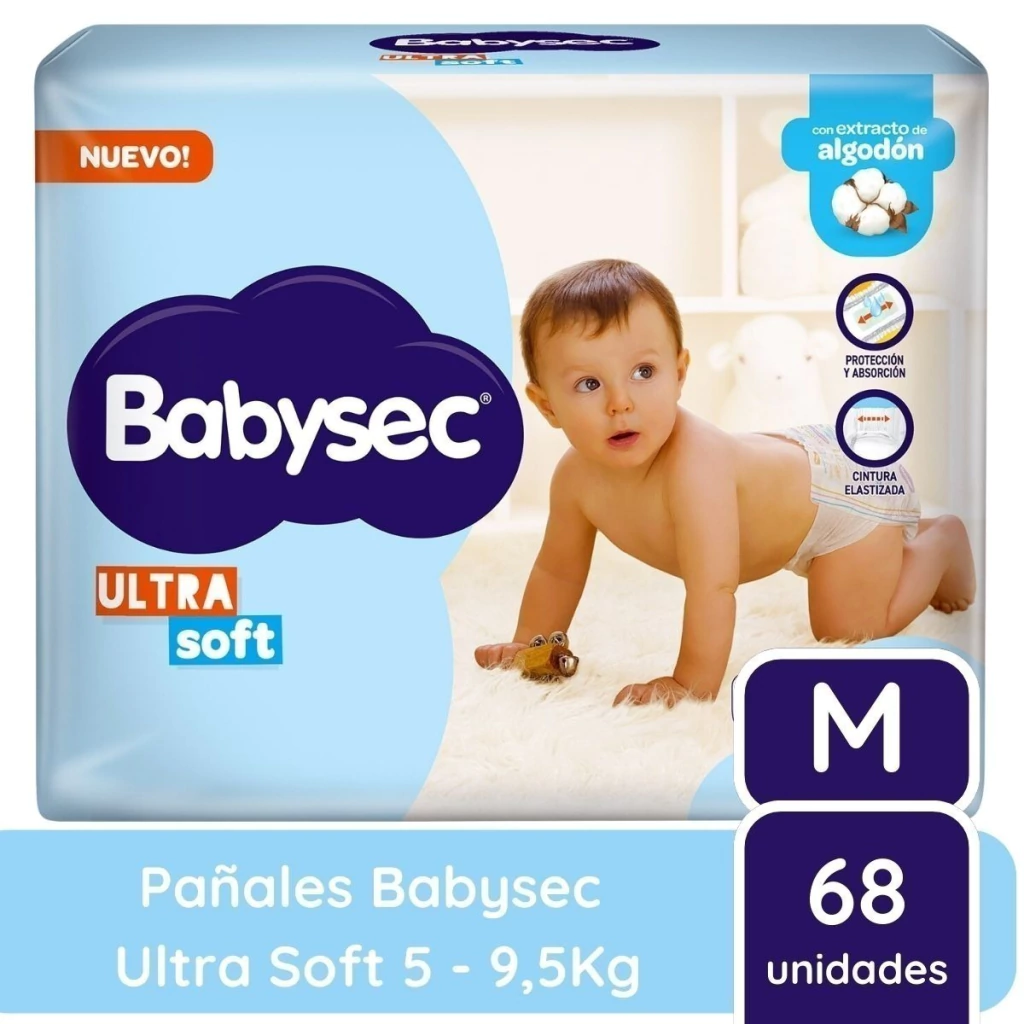Babysec Ultrasoft es un pañal hipoalergenico, para cuidar la piel de tu bebé. Protección y Absorción, gracias a sus barreras anti filtraciones, su gel super absorbente y su extracto de algodon. Su cintura elastizada permite un ajuste cómodo al cuerpo de tu bebé, ayuda a evitar filtraciones por la espalda, brindándole mayor protección y libertad en sus movimientos. Las cintas reajustables te permiten abrir, revisar y ajustar el pañal las veces que sea necesario.