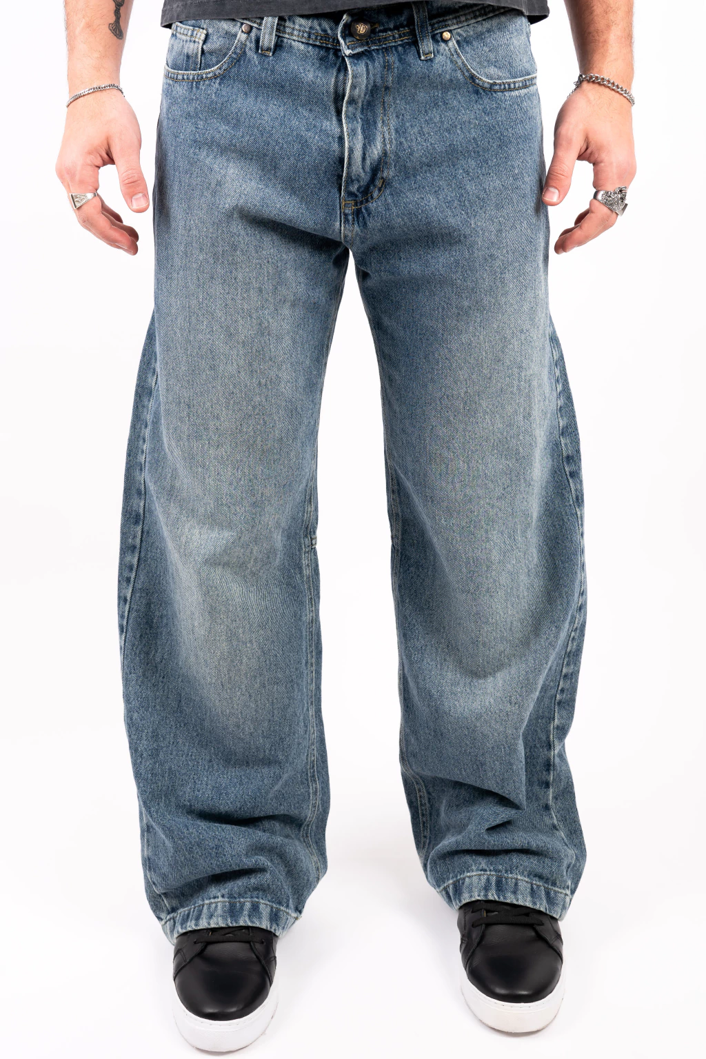Pantalón Denim Azul Rígido con Recortes en Pierna - BAGGY ACID 'MATT'