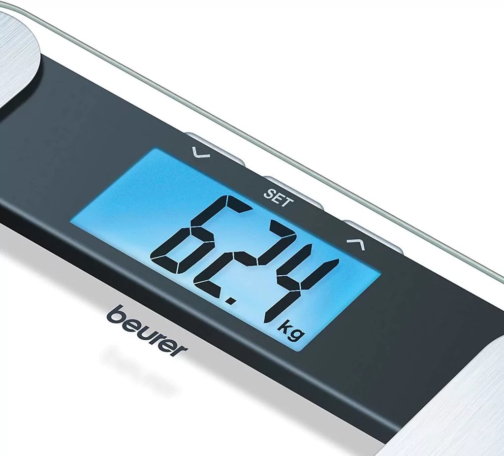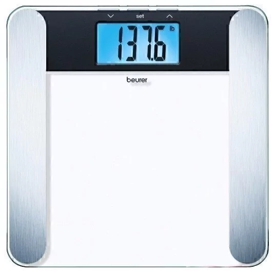 Balanza diagnóstica Beurer BF 220La balanza seduce por la pantalla LCD extragrande con retroiluminación azul y la gruesa superficie de vidrio.CARACTERISTICAS:Superficie extragrande de vidrio de 8 mm de grosor en formato XLPantalla LCD extragrande con retroiluminación azulMide peso corporal, masa adiposa, masa líquida y masa muscularPantalla con retroiluminación azulElectrodos de acero inoxidable cepillado5 grados de actividad10 Posiciones de memoria de usuariosMecanismo de encendido Quick-StartMecanismo de desconexión automática, aviso de sobrecargaCapacidad de carga: 180 kgTamaño de los números: 40 mmFunciona con 2 baterías de 3V CR2032Superficie de vidrio de seguridadDimensiones de la balanza 32 x 32 x 2,4cmTamaño de la superficie de pesaje en 32x32cmMediciones:Peso corporalMasa adiposaMasa líquidaMasa muscularGarantía 1 año
