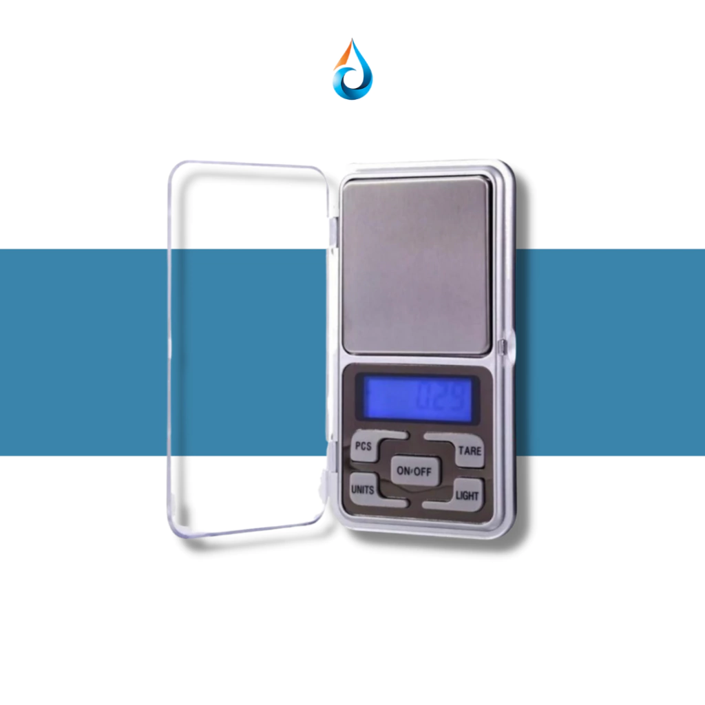 Balanza de Precisión Portátil ideal para resina epoxi 0.1gr - 500g* No Incluye baterías.* Precisión de 0,1 gramos a 500 gramos.* Display LCD luminoso azul de dígitos grandes.* Plataforma de Acero inoxidable anti-magnético.* Pesa pequeñas piezas.* Con Función Calibración TARA.* Tapa Protectora Rebatible.
