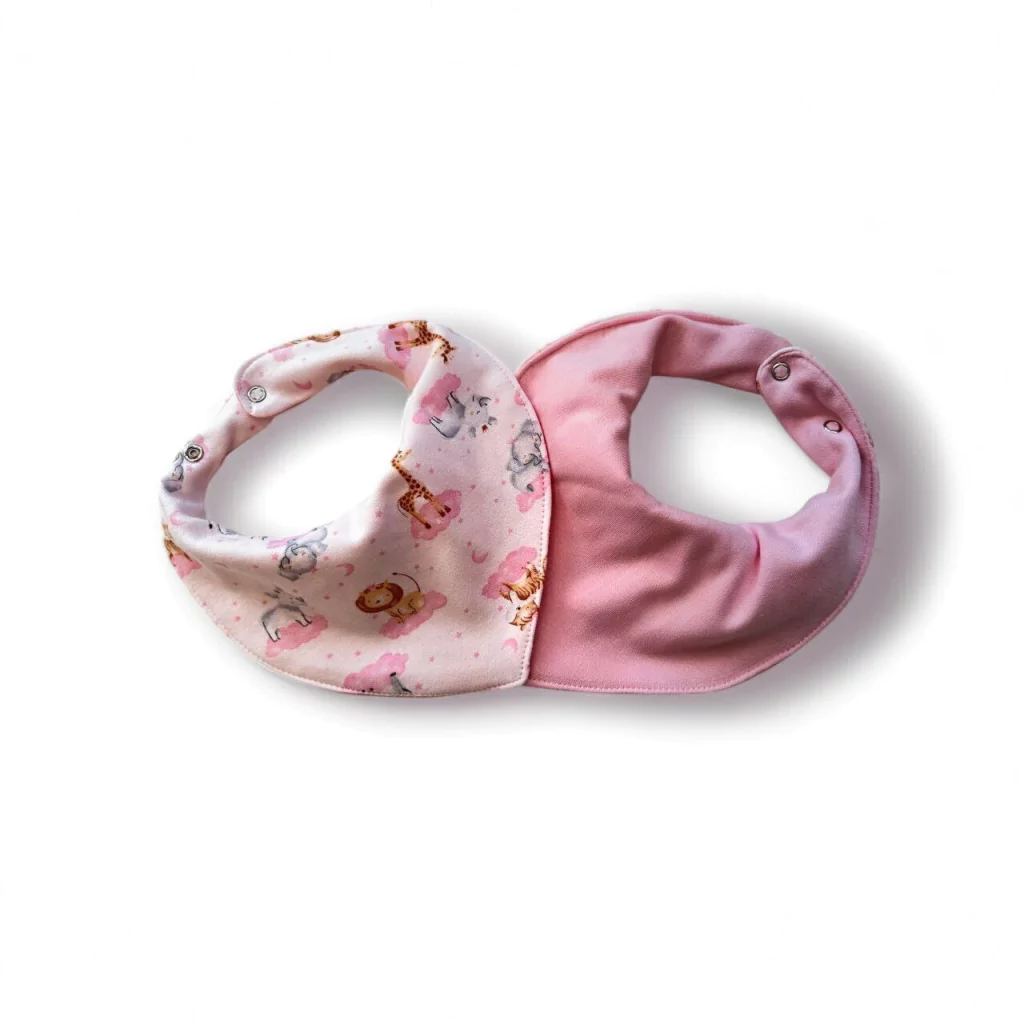 Nuestros baberos Bandanas están confeccionados en tela de jersey de algodón en colores lisos de un lado y del otro tenemos unas variedad de colores y telas que se combinan en la misma paleta de colores. Todos cuentan con triple capa de tela para evitar que el pecho de tu bebe se moje. También traen doble broche metálico para regular la medida según la edad del niño. Combinables, finos, útiles y cancheros todo en un solo producto. Te traemos diferentes opciones para que puedas elegir entre varias estampas y puedas completar el outfit de tu bebe a gusto.