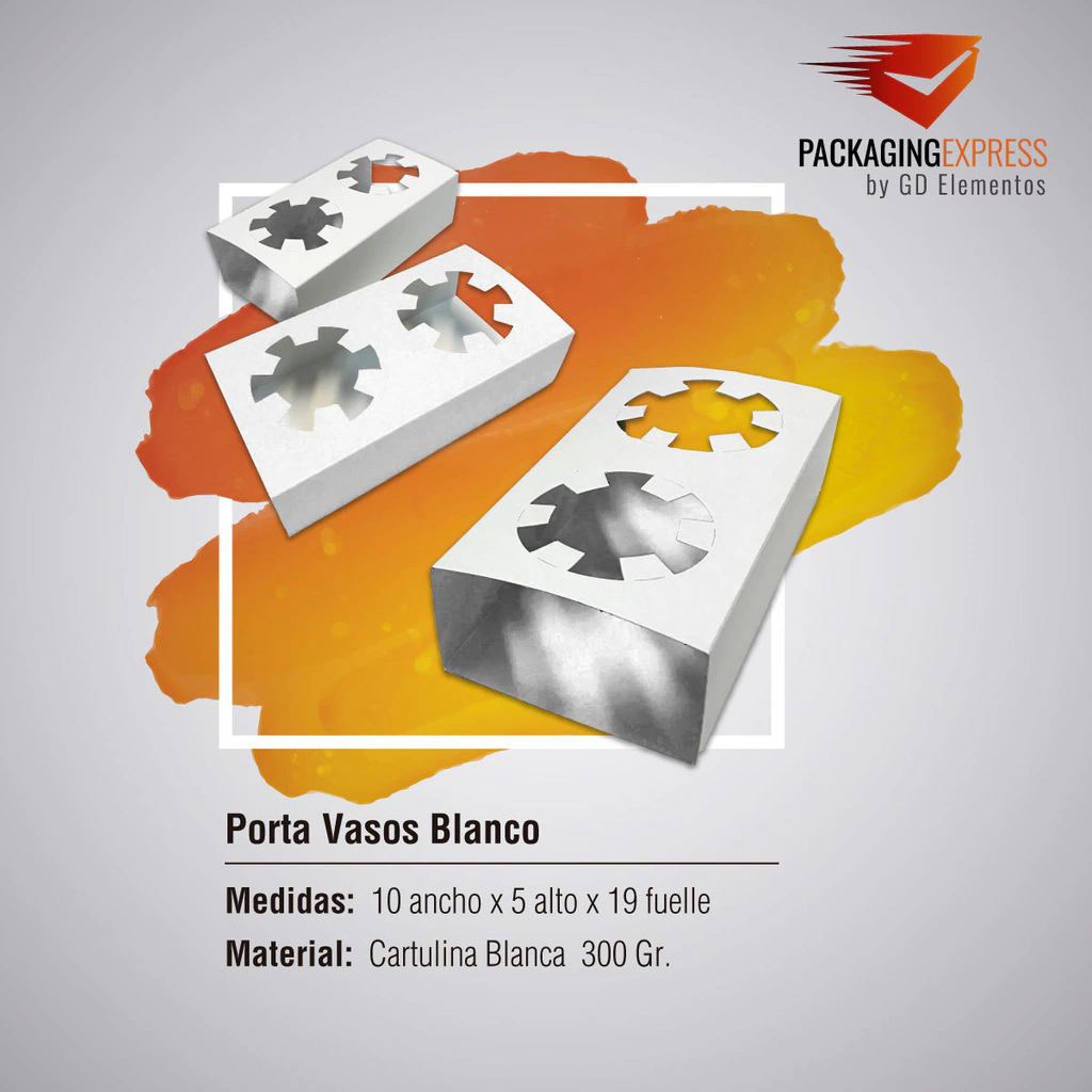 Bandeja Porta Vasos Descartable. Cartulina Blanca